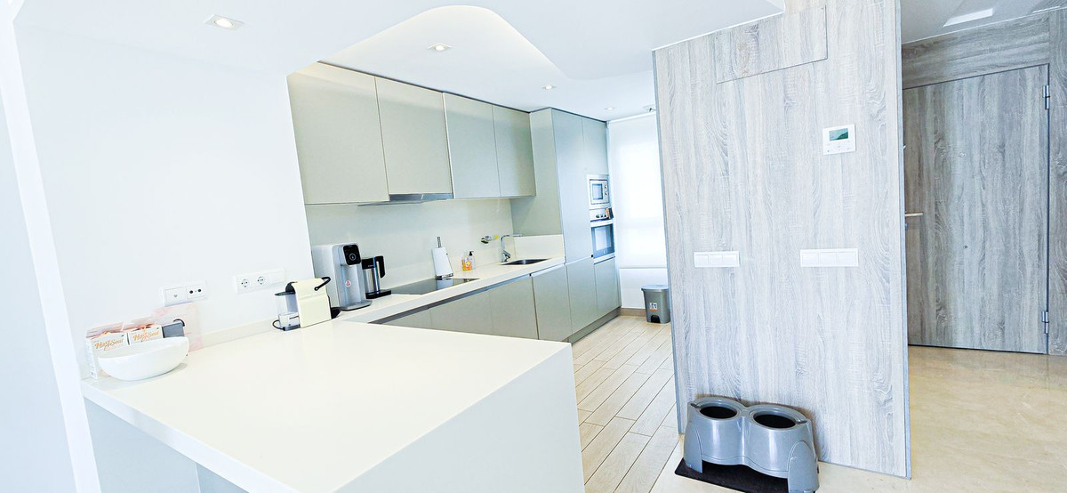 Premium Kitchen:Sleek resin worktops, high-end appliances.