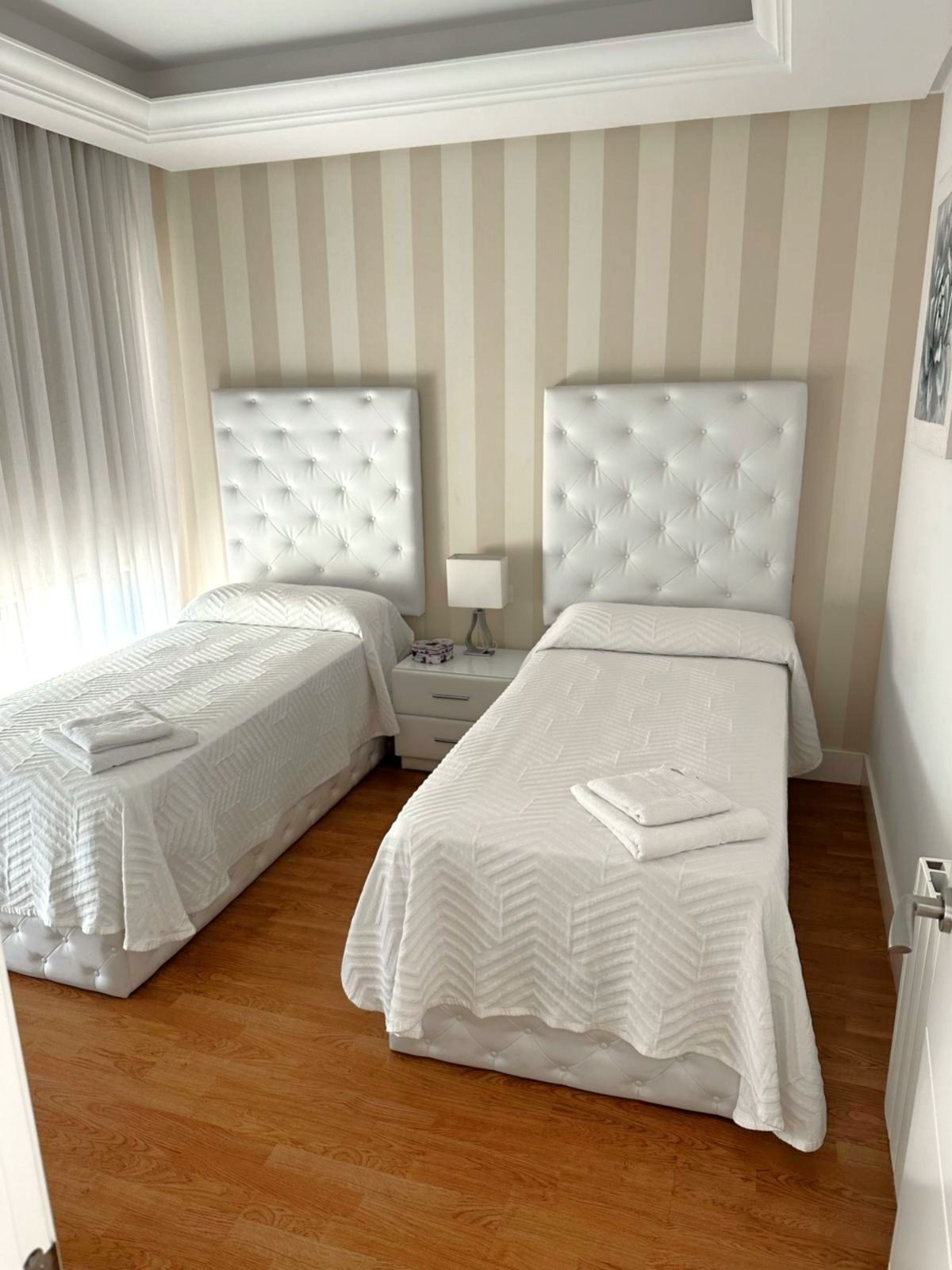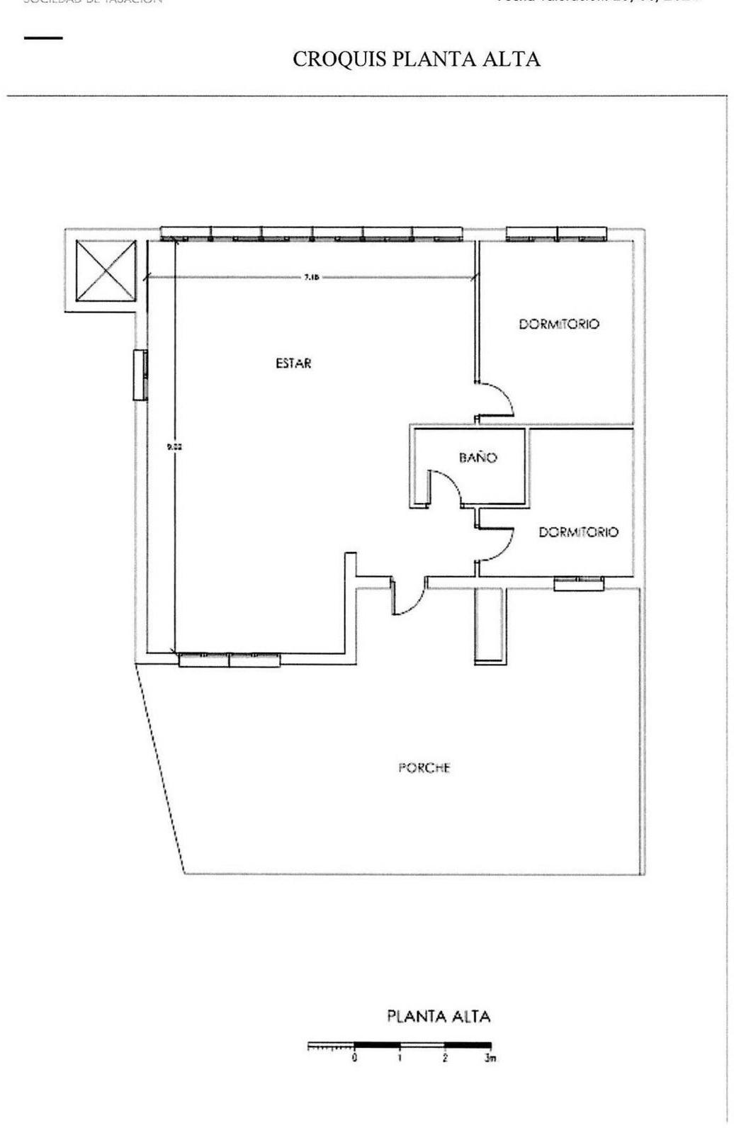 • À l'étage supérieur se trouvent deux chambres, une salle de bains, une terrasse couverte et découverte, et la piscine privée de 21 m².