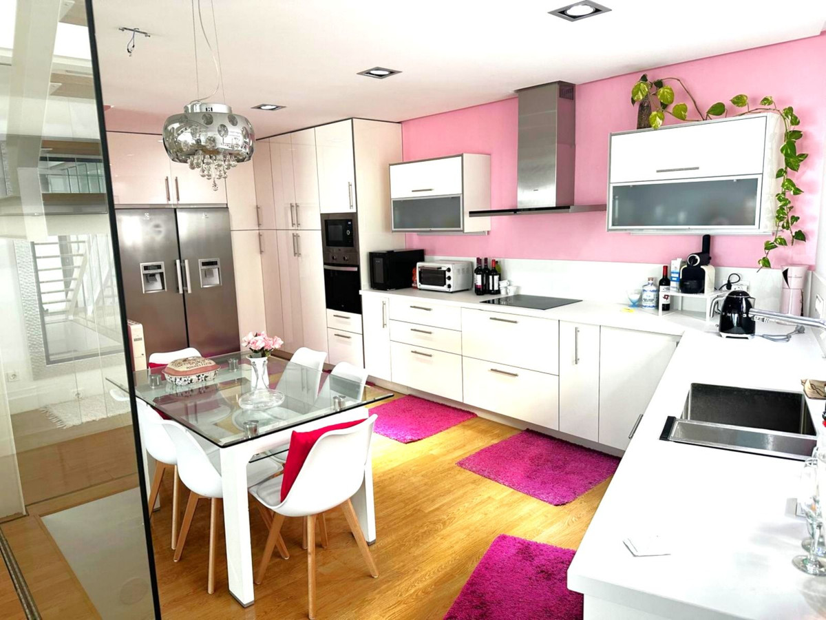 • À l'étage suivant se trouvent la cuisine spacieuse et le salon/salle à manger, ainsi que la chambre principale, le dressing et la salle de bains attenante.