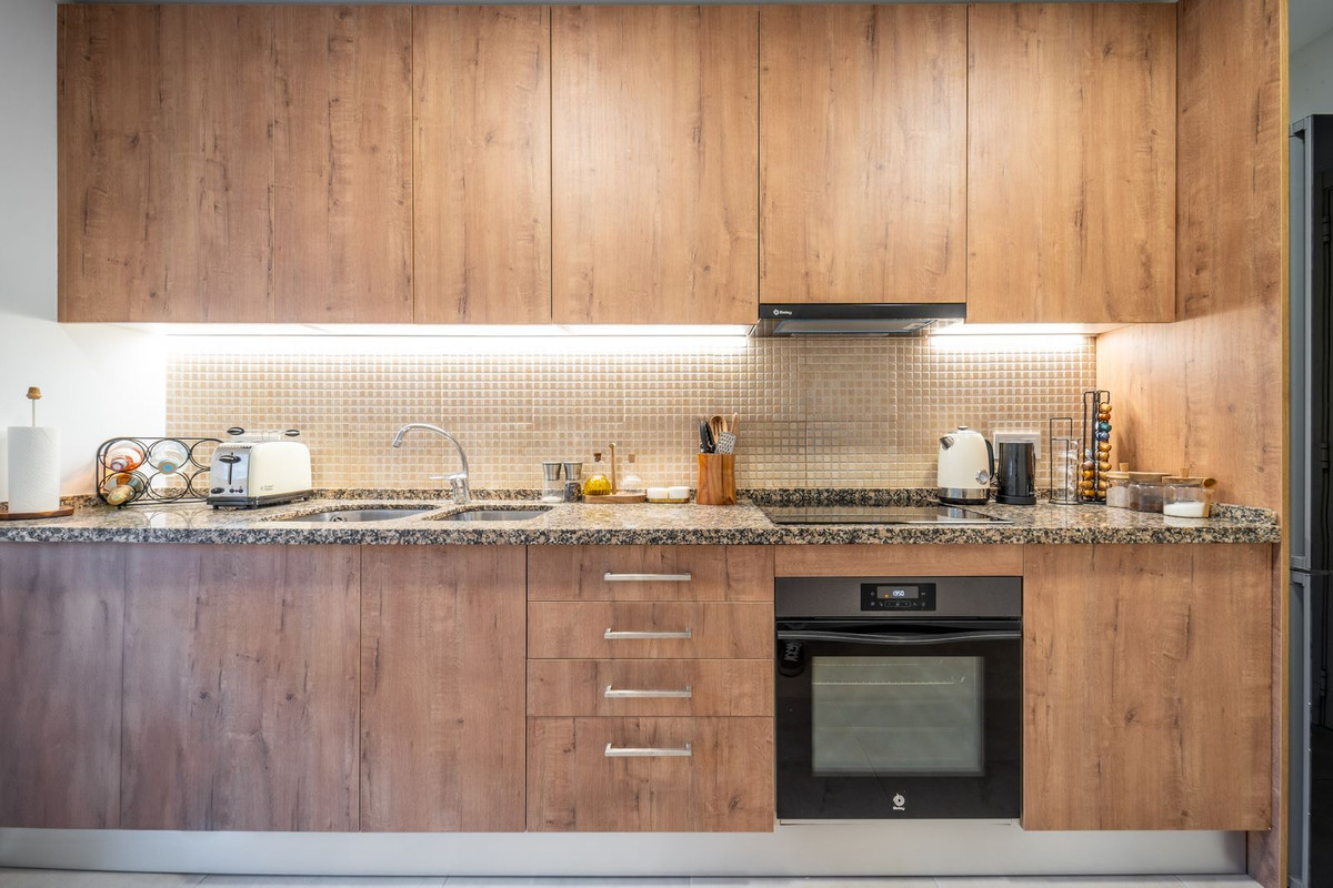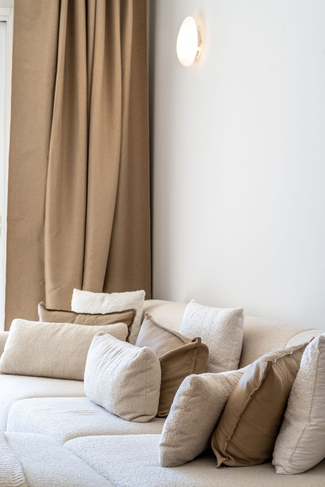 L'espace de vie ouvert, comprenant salon et salle à manger, se pare de teintes neutres et douces, de touches de bois chaleureuses et de finitions contemporaines élégantes. Il s'ouvre harmonieusement sur une vaste terrasse, idéale pour les repas en plein air ou pour se détendre au milieu d'une végétation luxuriante. La cuisine entièrement équipée allie fonctionnalité et design moderne, tandis que les deux chambres offrent un havre de paix, dont une suite parentale spacieuse avec salle de bains privative.