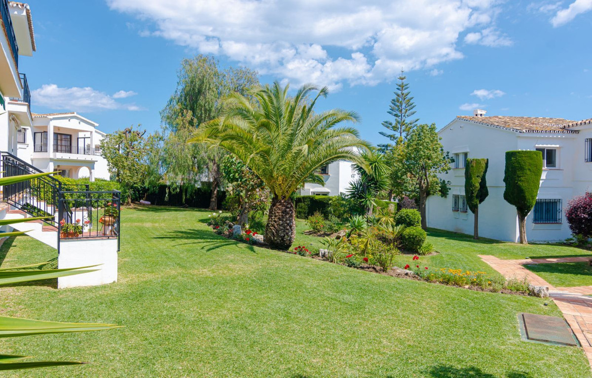 The community offers an immaculately maintained residents swimming pool and tropical palm gardens expertly decorated with tall palm trees, colourful bougainvillea and Andalucían Roman garden features, designed within its exquisite tiled pathways decorating the community throughout.