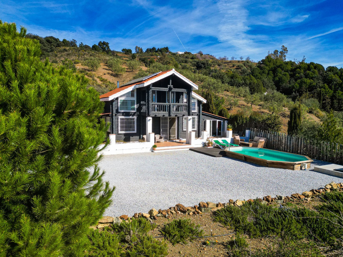 This charming south-facing wooden chalet is set on a generous 2,555 m² plot in a superb and tranquil location, offering beautiful views of the mountains and the sea. It is ideally situated just 5 minutes by car from Canillas de Albaida and Árchez, and only 10 minutes from Cómpeta. The property has excellent access with no rough or dirt tracks.