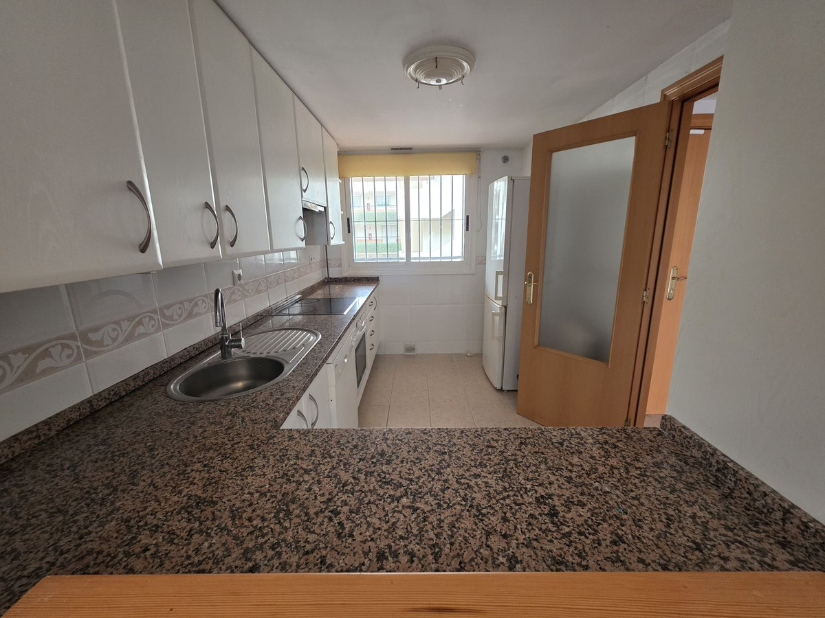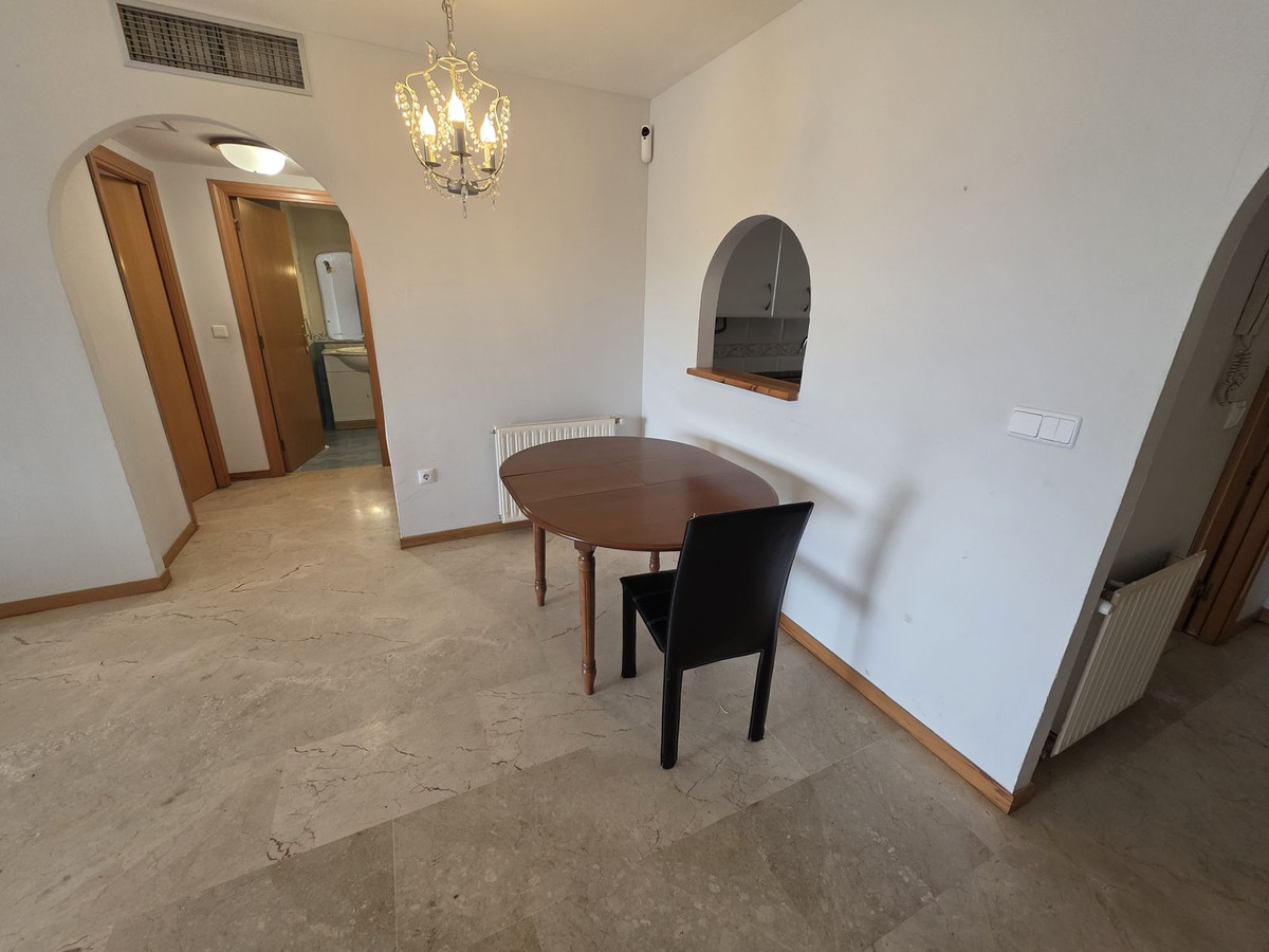 The property offers a spacious and bright entrance hall leading to the dining room and a spacious living room with direct access to a large terrace, with the possibility of glazing. It has two bedrooms, both with access to the terrace, and two bathrooms, one of which is en-suite in the master bedroom. The separate kitchen is fully equipped and has a window to the outside.