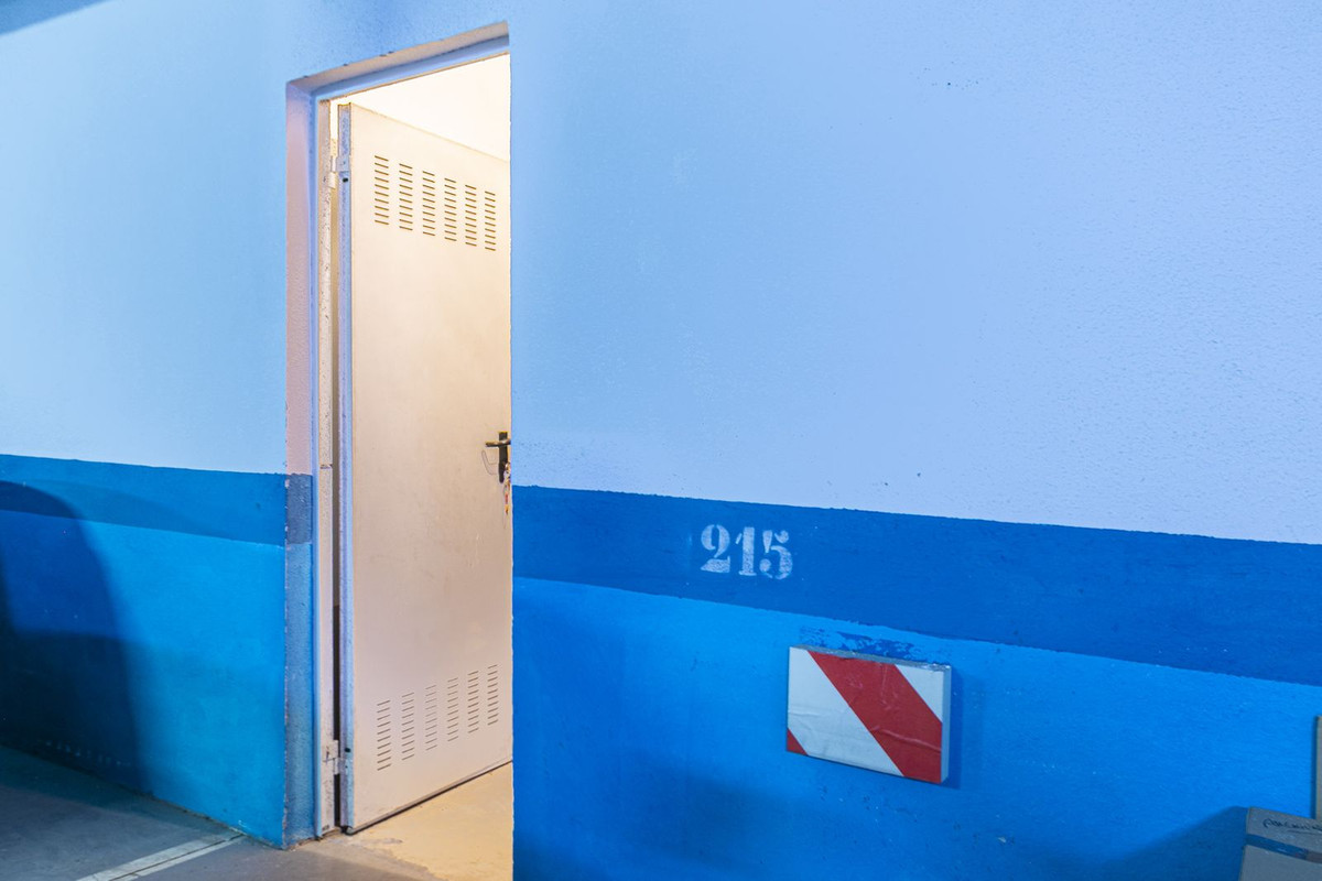 The townhouse includes two parking spaces. There is a covered parking space in the complex's garage and another outdoor space within the residential area.