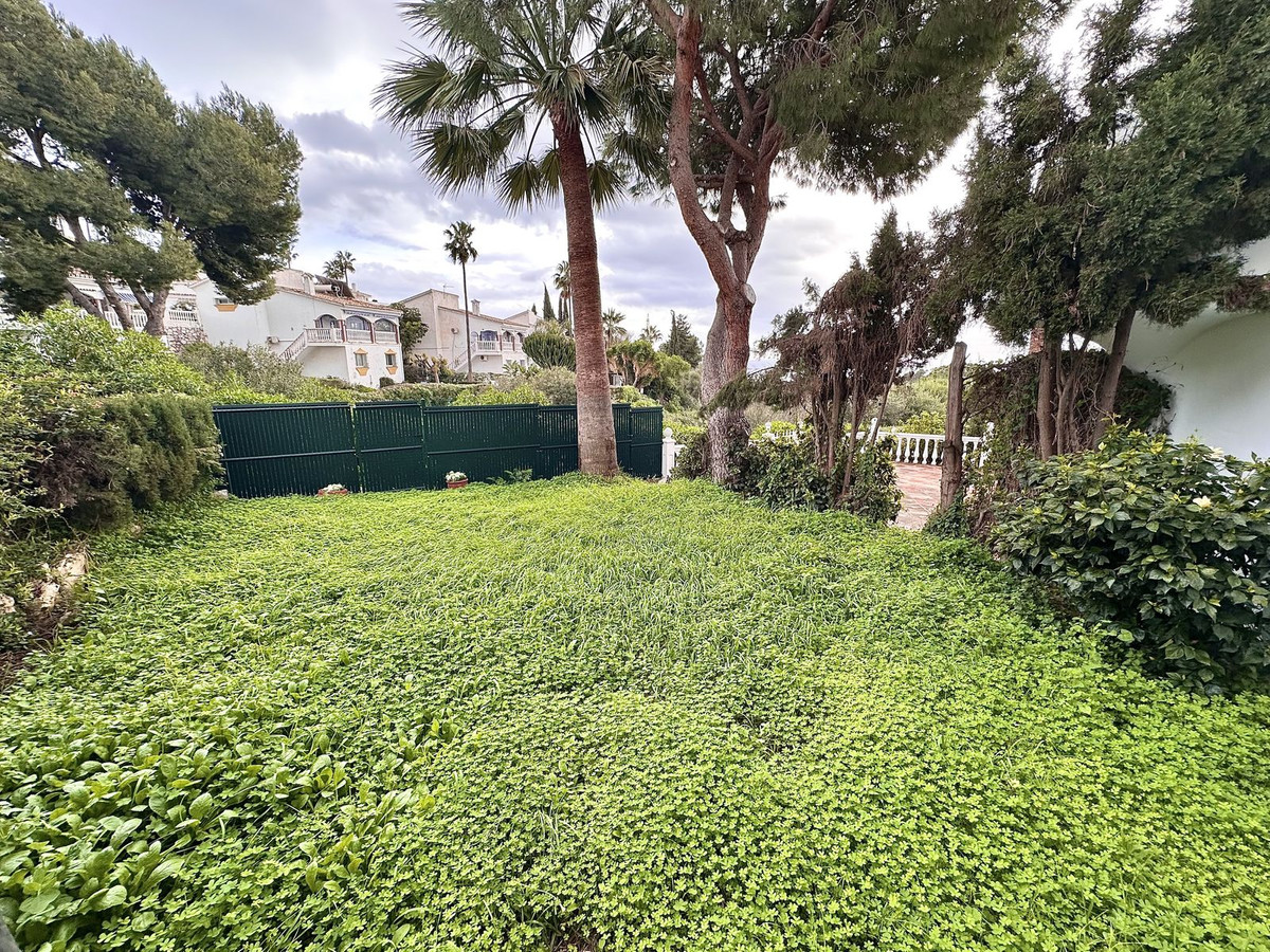 The ground floor houses the sleeping area, consisting of three bedrooms and two bathrooms, one of them en-suite in the master bedroom. Both the master bedroom and one of the secondary bedrooms have direct access to a private garden of approximately 50 m², an intimate and pleasant space that connects directly to the community pool, ideal for enjoying the climate and outdoor living.