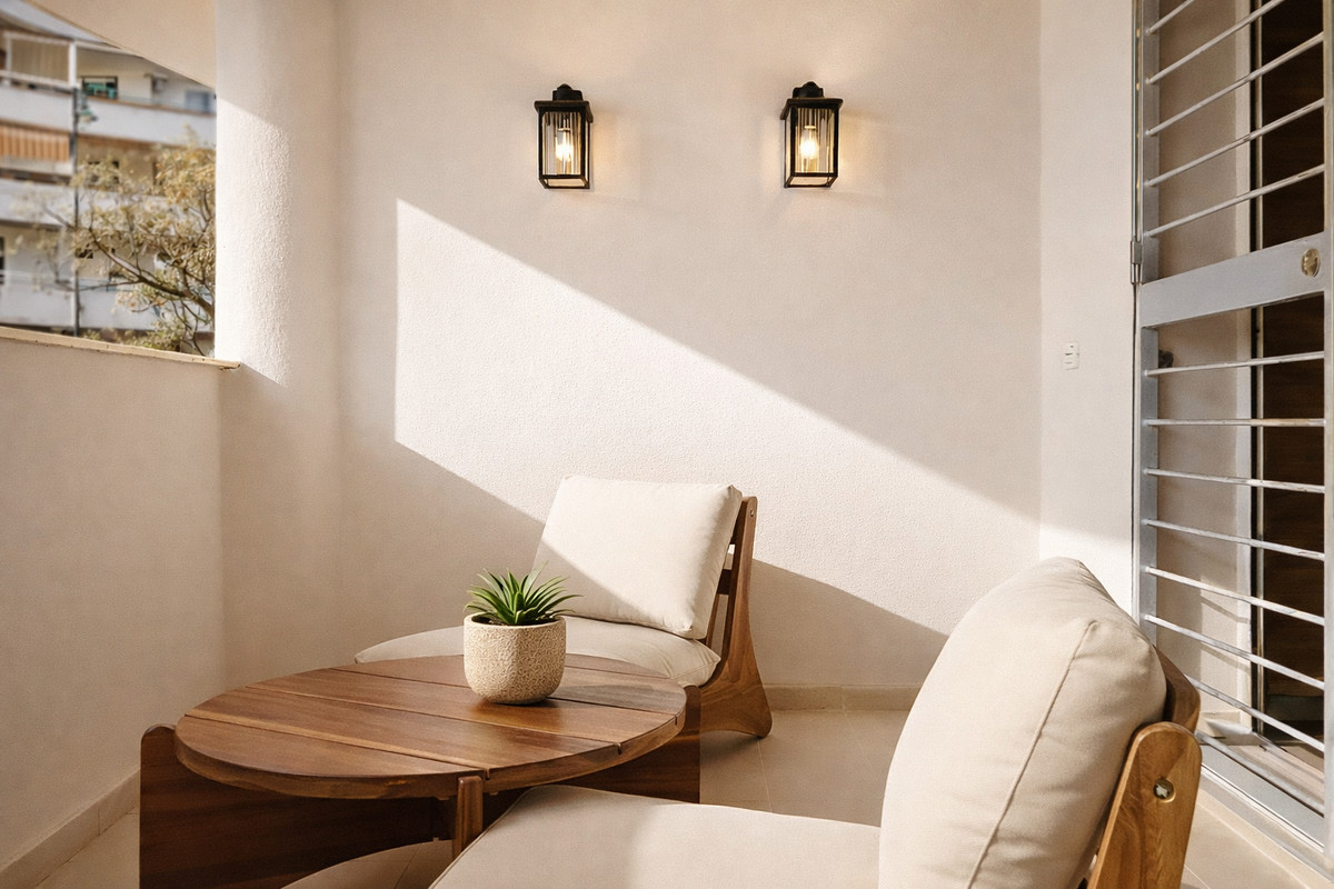 The apartment features three spacious bedrooms, all with new, lined, and illuminated built-in wardrobes, as well as ceiling fans and a powerful air conditioning system (8,000 frigories) that ensures maximum comfort throughout the year. The master bedroom has an en-suite bathroom with a modern shower and access to a balcony overlooking the interior of the complex, while the other two bedrooms—one currently used as a dressing room—share a second full bathroom. Both bathrooms stand out for their complete renovation with top-quality finishes, each featuring exterior windows that provide perfect ventilation. They include sliding glass shower screens designed to offer greater comfort and elegance.