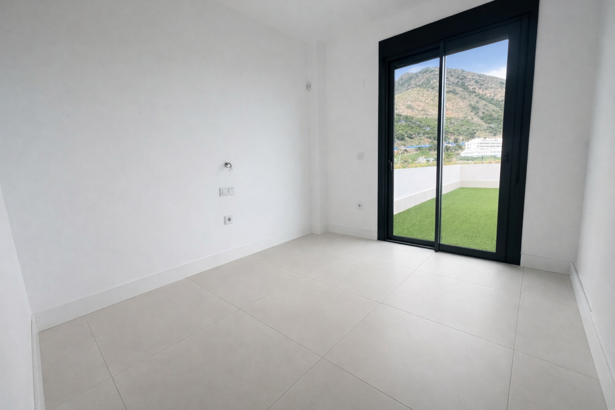 Located in the prestigious El Higuerón, this elegant ground-floor apartment offers refined Mediterranean living just minutes from the sea. The property features three spacious bedrooms and two contemporary bathrooms, including a master en-suite, all designed with comfort and natural light in mind. The open-plan living area connects seamlessly to a 30 m² covered terrace and a 100 m² private garden, creating the perfect setting for outdoor dining and relaxation with garden, sea, and mountain views.