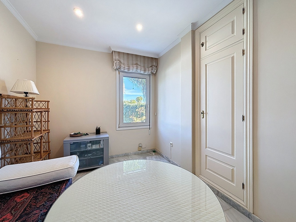 Découvrez votre havre de paix dans ce charmant appartement de trois chambres et trois salles de bains, situé dans le quartier résidentiel prisé d'El Capitan. Réparti sur deux étages, ce bien allie à la perfection confort moderne et élégance décontractée typiquement espagnole, et offre la possibilité d'aménager deux chambres supplémentaires selon vos besoins. Dès l'entrée, l'appartement vous séduit par son atmosphère lumineuse et chaleureuse. Le salon, baigné de lumière naturelle, se distingue par ses touches de vert citron qui lui confèrent énergie et convivialité. Des canapés confortables aux tons doux créent un espace idéal pour se détendre ou recevoir, tandis que de grandes fenêtres offrent une vue imprenable sur les environs. La cuisine, à la fois fonctionnelle et esthétique, est équipée de meubles en bois, d'appareils électroménagers modernes et d'un généreux plan de travail. De larges portes vitrées relient l'intérieur à l'extérieur, vous invitant à savourer des repas en plein air sous le soleil espagnol. De plus, un système d'osmose inverse permet de consommer l'eau directement du robinet, garantissant ainsi une eau d'excellente qualité. À l'étage, les trois chambres offrent calme et intimité. La suite parentale se distingue comme un véritable havre de paix, avec ses tons doux et ses vues inspirantes qui promettent des matins sereins. Les trois salles de bains, finies avec des matériaux de qualité et équipées d'installations modernes, offrent confort et une touche de luxe aux résidents comme à leurs invités. La maison dispose également de deux réservoirs d'eau de 2000 litres chacun, d'un puits enregistré et d'un ascenseur, garantissant confort et autonomie. Des solutions de rangement intégrées et un système de climatisation assurent un confort optimal toute l'année. Bien plus qu'une simple maison, cette propriété est une invitation à savourer l'authentique art de vivre méditerranéen. Imaginez des matins ensoleillés sur votre terrasse, des après-midi de détente au bord de la piscine et des soirées inoubliables à contempler le coucher du soleil. Située dans le quartier résidentiel prisé d'El Capitan, elle offre la tranquillité sans renoncer à la proximité des commodités et du littoral. Nous serons ravis de vous présenter prochainement cette propriété, en personne ou par visite virtuelle. Car ce monde est unique, à l'image de notre Axarquía. En Andalousie. Sur la Costa del Sol. Ici, sous le soleil…