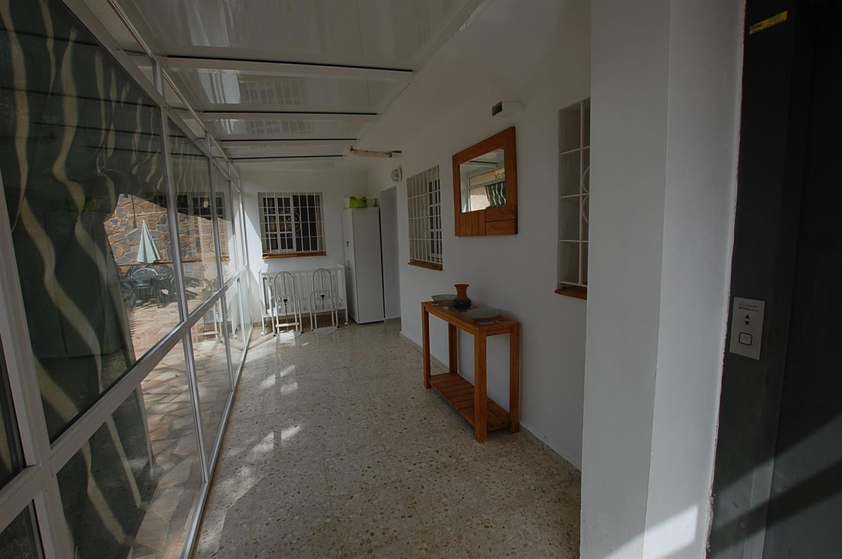 Une grande villa située dans une impasse tranquille du lotissement Campo Mijas, avec un vaste jardin clos de murs et de portails offrant un parking spacieux pour 3 ou 4 voitures. L'accès à la propriété se fait par une allée privée avec portail donnant sur le grand parking et un accès direct à la maison. Au rez-de-chaussée surélevé, on trouve une piscine, un barbecue et une terrasse ensoleillée menant au hall d'entrée, un grand séjour/salle à manger ouvert, un second salon avec cheminée, une suite parentale avec une grande salle de douche, une deuxième chambre avec salle de bains privative, une grande cuisine avec un coin bureau/salle à manger séparé donnant accès à une autre grande terrasse ensoleillée. Le séjour bénéficie également d'un accès direct à la terrasse principale, couverte et découverte, avec barbecue, bar et piscine, offrant une vue panoramique imprenable sur la vallée au sud-ouest. L'étage inférieur, accessible par un escalier, comprend deux autres chambres avec accès à la terrasse inférieure, une véranda, une grande salle de douche et une troisième chambre avec salle de douche privative et terrasse privée attenante à l'entrée principale. De vastes jardins paysagers, faciles d'entretien, entourent la maison. Derrière la maison se trouve un grand chalet en bois actuellement utilisé comme espace de stockage. Cette propriété bénéficie d'un emplacement idéal, à proximité de toutes les commodités d'El Coto. Les terrasses et la piscine offrent une vue panoramique imprenable. La maison est entièrement climatisée et sera vendue partiellement meublée. Elle dispose également d'un ascenseur et de panneaux solaires. Adaptée aux personnes à mobilité réduite et aux personnes âgées, elle constitue une excellente résidence familiale ou de vacances.