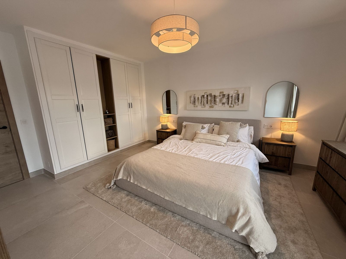 The master suite is a private sanctuary, opening onto a generous upper terrace with captivating views across the golf course to the mountains and glimpses of the Mediterranean Sea. Two further beautifully finished bathrooms serve the additional bedrooms, all designed as full bathrooms rather than guest WCs, reinforcing the home’s premium positioning.