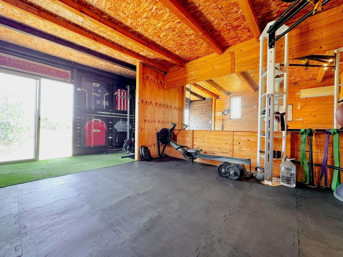 Les espaces extérieurs sont tout aussi impressionnants. Les jardins magnifiquement entretenus, parsemés d'arbres fruitiers, forment une oasis de paix. Une piscine à débordement privée surplombe les montagnes, tandis qu'une terrasse panoramique offre des couchers de soleil méditerranéens inoubliables. On y trouve également un espace barbecue pour les repas en plein air et une salle de sport privée de 20 m² pour ceux qui privilégient le bien-être.
