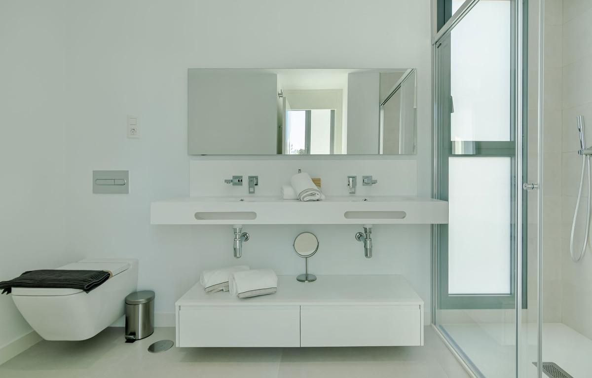 Villa individuelle contemporaine de 4 chambres située dans le prestigieux domaine privé de Cabo Royale, à Calahonda (Mijas Costa), à l'est de Marbella. Construite en 2021, la propriété bénéficie d'une orientation plein sud, offrant une luminosité exceptionnelle, une vue imprenable sur la mer et une grande intimité. La villa se trouve à quelques pas du port de plaisance de Cabopino et à environ 700 mètres de la plage. Des terrains de golf et des commerces de proximité sont également accessibles à pied.