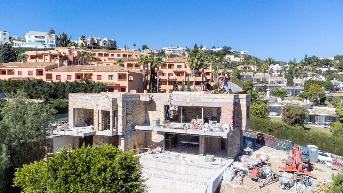 Positioned frontline to the golf course in El Paraíso, this contemporary new-build villa is currently under construction with completion scheduled for June 2026. Elevated above the fairways and surrounded by mature pine trees, the property enjoys open golf and sea views, privacy and easy access to Marbella and Estepona. Designed across four levels, the villa combines clean architectural lines with a strong indoor-outdoor flow. Floor-to-ceiling glazing and expansive terraces create bright, open living spaces, while a neutral palette enhances the sense of space and light. The property offers approximately 404 m² built and over 600 m² of total usable space including terraces and solarium.