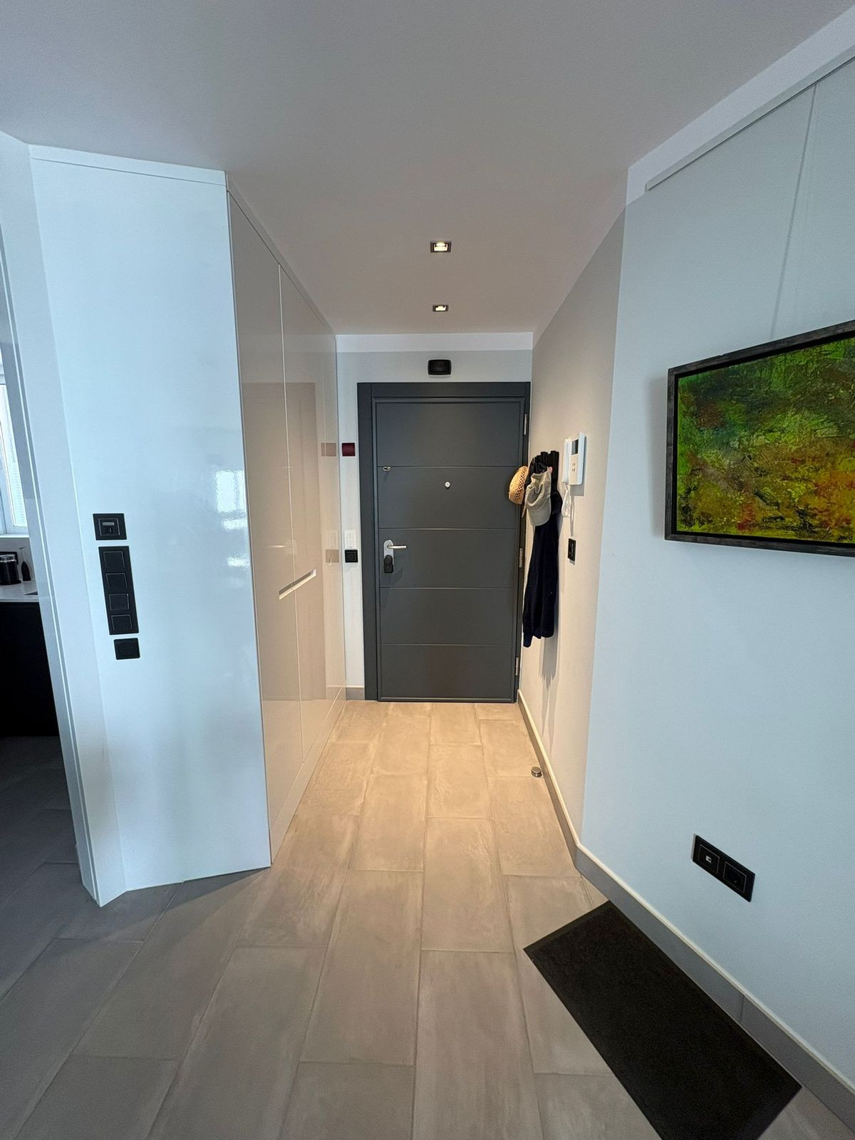 Dining room with the living room next to it, sliding door to the terrace. Spacious bedroom with sliding door to the terrace. The best materials have been used, both for the kitchen cabinets, appliances, worktop and lighting. New floors throughout the flat, top quality sliding doors that are heat and cold resistant. Impecable seaviews 180 degrees.