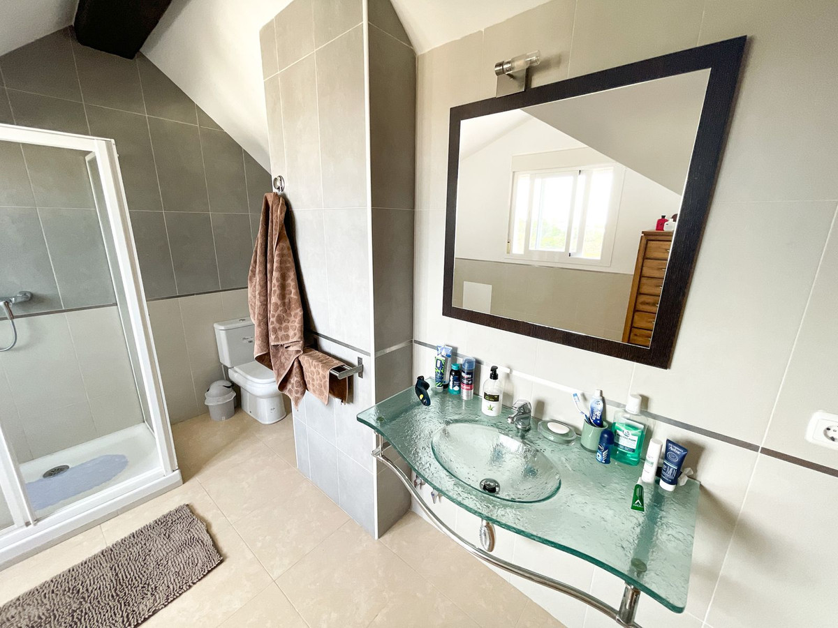 There is a toilet for the pool area, as well as an additional guest toilet inside the living room. The spacious and functional kitchen has direct access to another terrace, ideal for everyday use.