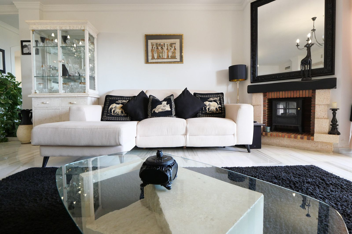 If you want SEA VIEW this is the ideal 2 bed / 2 bathrooms (one en suite) apartment in upper Calahonda. The apartment is a very well maintained property., As you enter you will find the kitchen on your left hand side. The dinning room/lounge with a log fire give to a decent size terrace where you can enjoy the unobstructed view of Mediterranean sea. The master bedroom with an ensuite bedroom has direct access to the terrace. As for the the guest bedroom has the bathroom just outside in the corridor. .