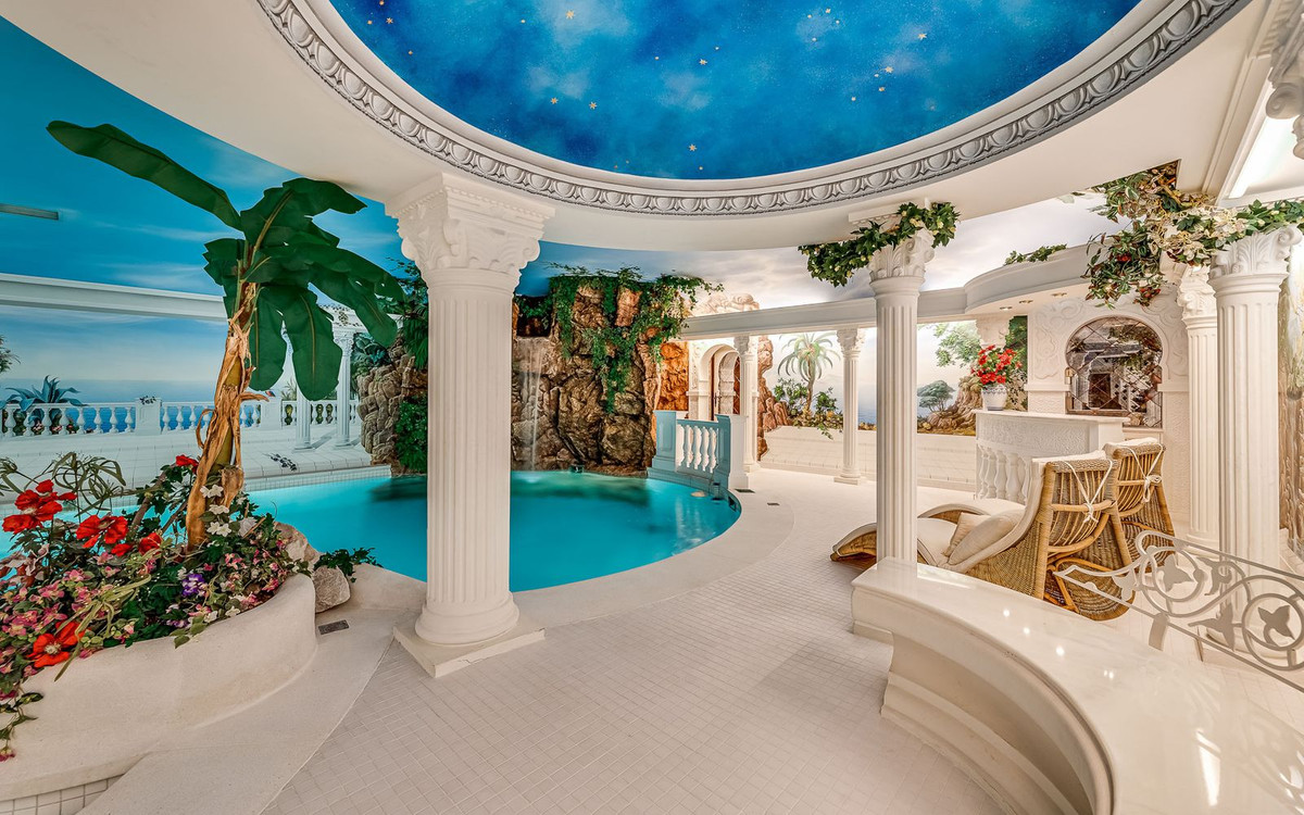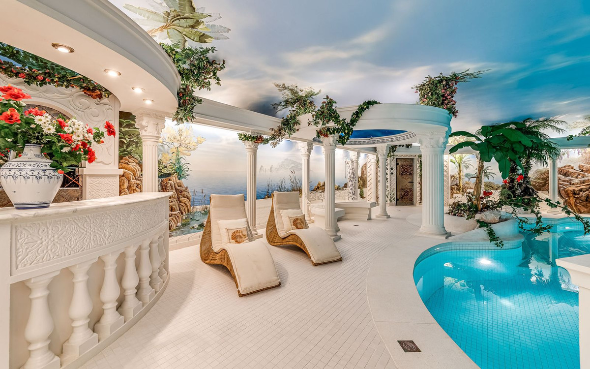 Caractéristiques : Terrasse couverte, Placards intégrés, Terrasse privée, Télévision par satellite, Salle de sport, Sauna, Débarras, Buanderie, Salle de bains attenante, Sol en marbre, Jacuzzi, Barbecue, Double vitrage, Écuries, Sous-sol