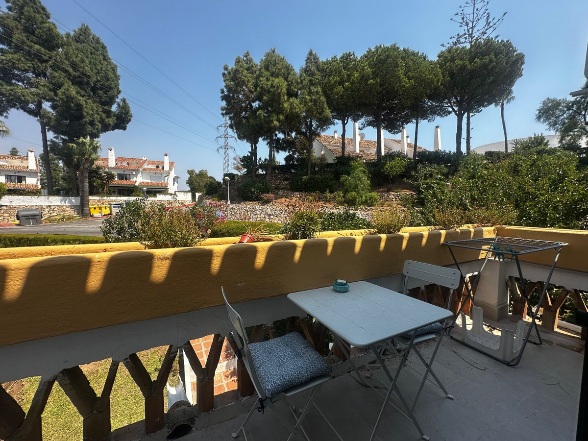 Charmante maison jumelée à Calahonda, située en première ligne d'un terrain de golf dans un quartier résidentiel calme avec piscine commune et jardins magnifiquement entretenus.