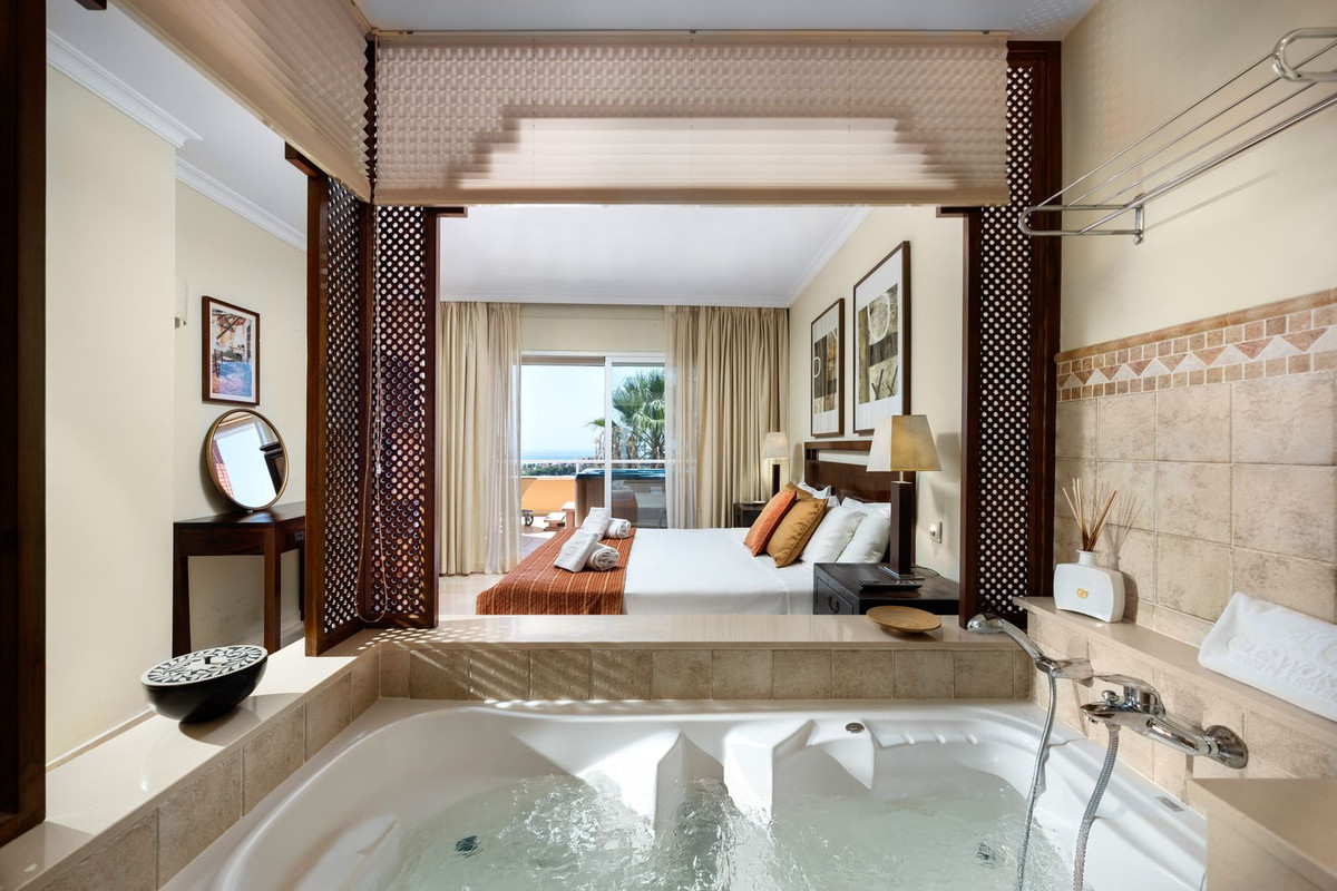 Magnifique appartement de luxe au premier étage, à vendre dans la résidence Hotel Resort, située entre La Cala et Fuengirola. Cet élégant appartement de deux chambres et deux salles de bains, construit en 2006, se trouve dans une résidence de prestige sécurisée 24h/24.