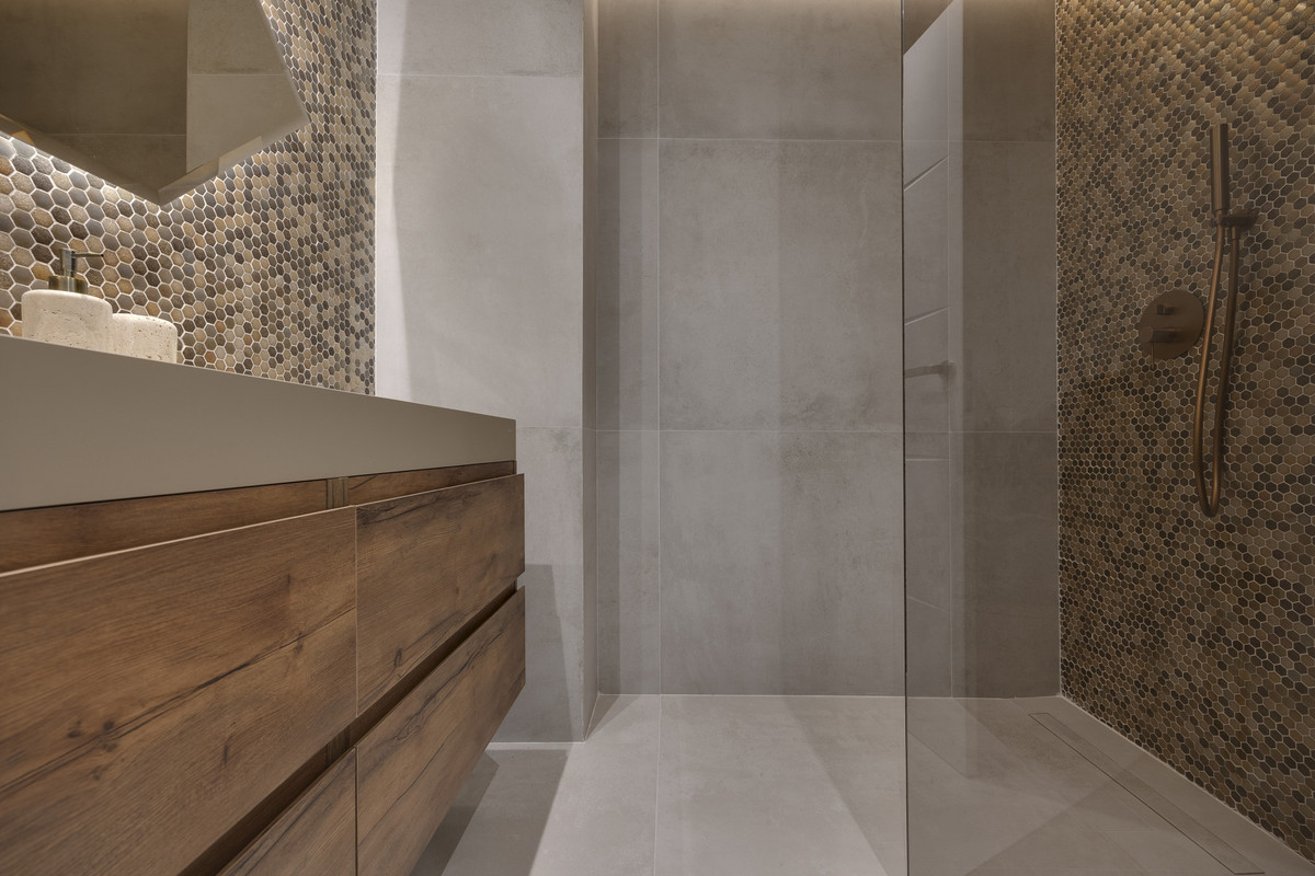 Cet appartement offre une surface habitable totale de 186 m², dont 133 m² de surface au sol et une terrasse de 37 m² prolongeant les pièces principales. Son agencement s'articule autour d'un espace de vie ouvert comprenant salon et cuisine, conçu pour favoriser la fluidité entre les moments de détente au quotidien et les réceptions. Des lignes architecturales épurées, un éclairage encastré au plafond et des matériaux neutres créent une ambiance intérieure harmonieuse et moderne. La cuisine s'intègre parfaitement aux espaces salle à manger et salon, formant ainsi le cœur fonctionnel de l'appartement. Les trois chambres sont spacieuses, avec deux salles de bains privatives et un WC séparé. Chaque salle de bains est équipée d'accessoires contemporains, alliant fonctionnalité et design sobre.