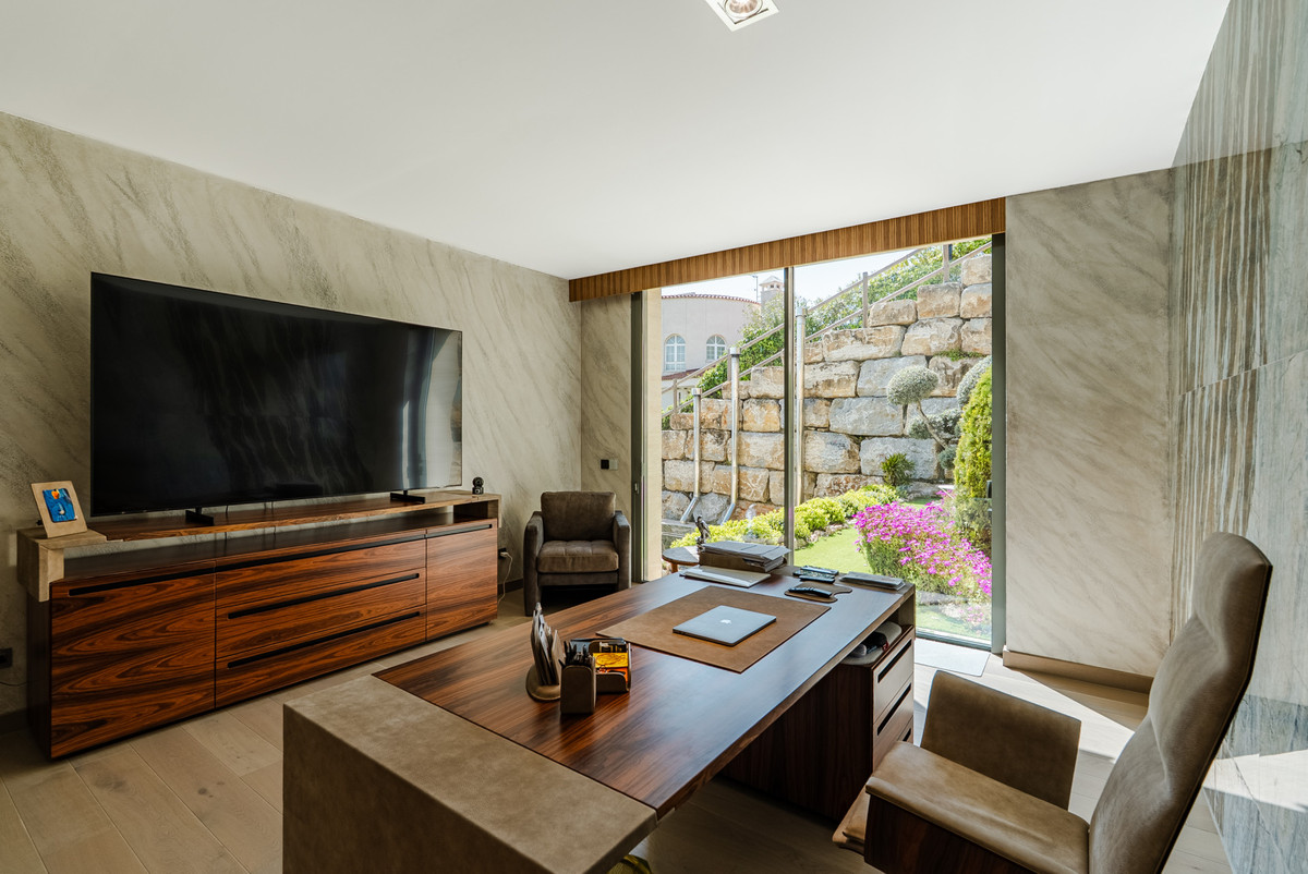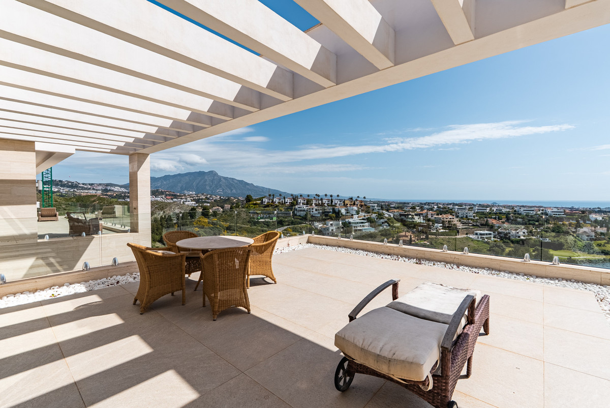 Située sur un terrain surélevé et privé dans l'un des quartiers résidentiels les plus prisés de Benahavís, cette villa contemporaine d'exception offre une vue panoramique imprenable sur la mer Méditerranée, la vallée du golf et les montagnes environnantes.