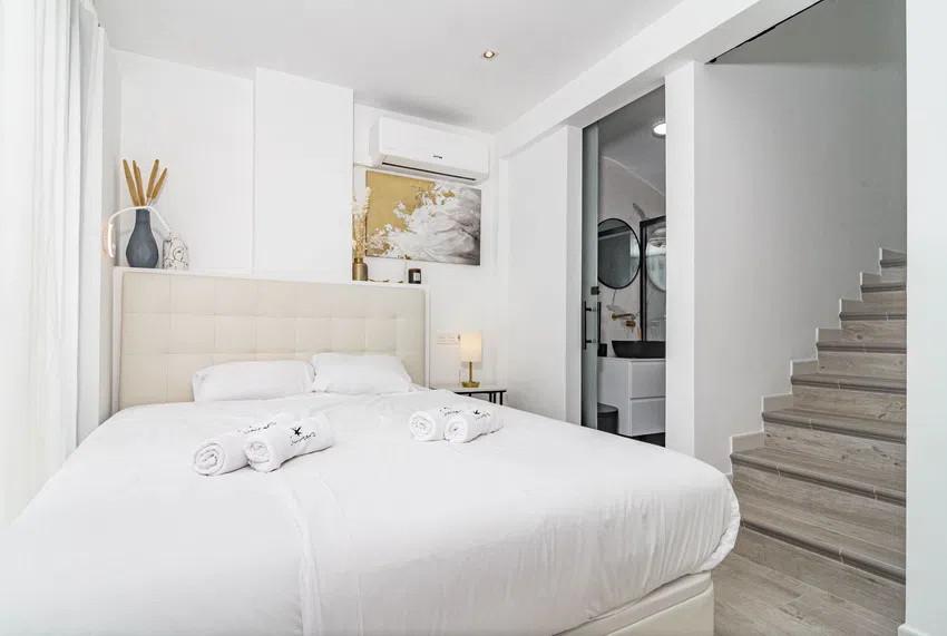 Cette villa mitoyenne de trois étages, orientée plein sud, offre un confort optimal. Elle comprend trois chambres modernes et lumineuses, trois salles de bains entièrement équipées avec des finitions haut de gamme, un séjour/salle à manger spacieux et lumineux, une cuisine américaine moderne et entièrement équipée, un jardin/patio privatif et une grande terrasse à l'un des étages supérieurs offrant une vue imprenable sur les environs. Une place de parking est située juste devant la villa.