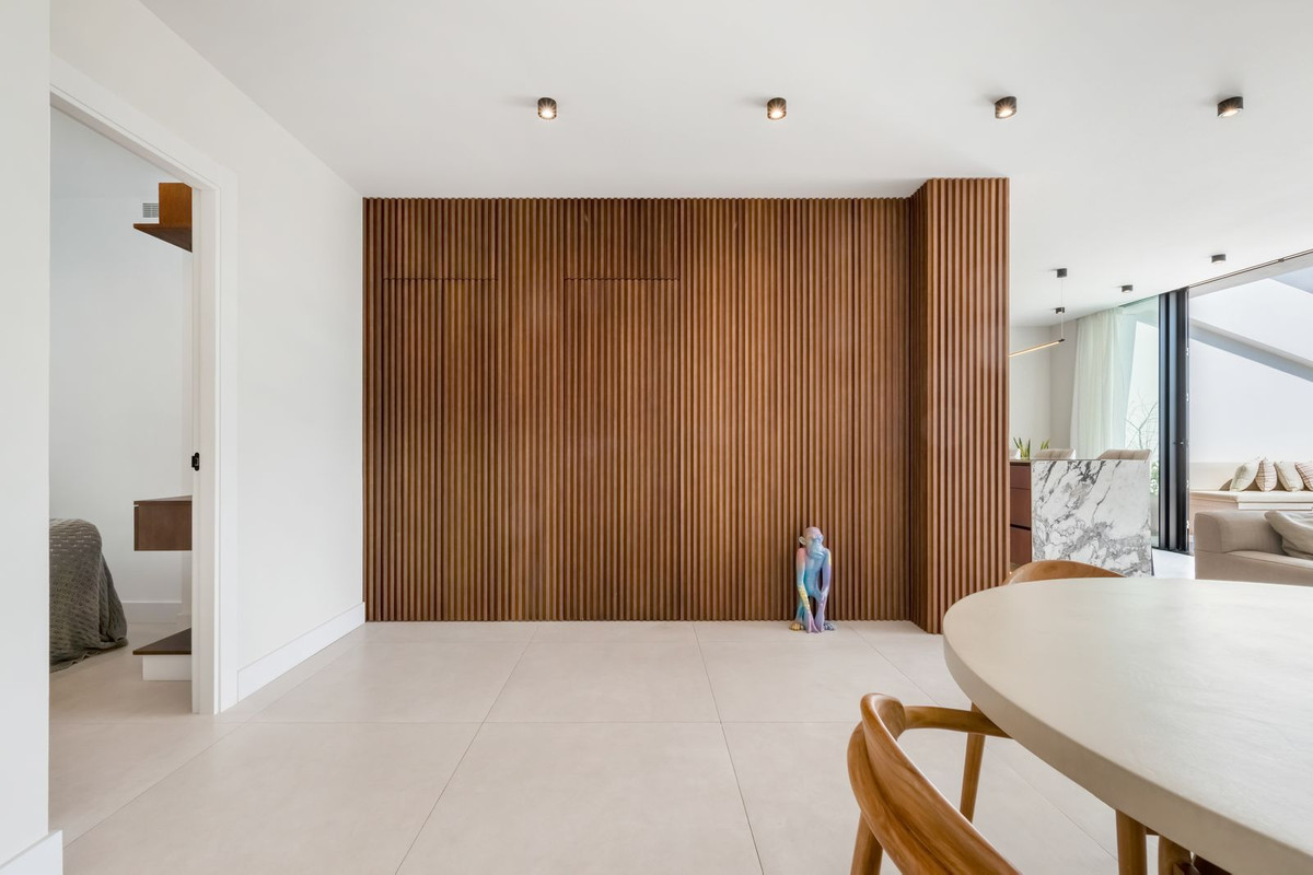 Conçu pour savourer pleinement le style de vie méditerranéen, ce penthouse offre de vastes terrasses au rez-de-chaussée ainsi qu'un refuge privé sur le toit. L'étage supérieur est équipé d'une cuisine extérieure complète, créant un espace idéal pour recevoir, dîner ou se détendre tout en admirant une vue imprenable sur la mer.