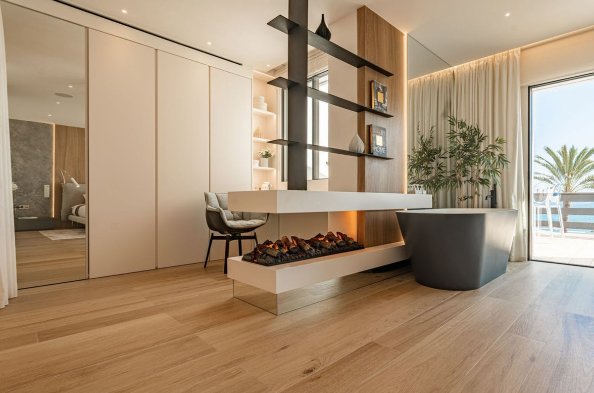 Vivez l'expérience ultime du style de vie méditerranéen dans cette superbe résidence de 222 m² en bord de mer, idéalement située sur le légendaire Golden Mile de Marbella. À deux pas du glamour de Puerto Banús, cette maison de quatre chambres a été repensée avec soin pour offrir un raffinement moderne absolu.