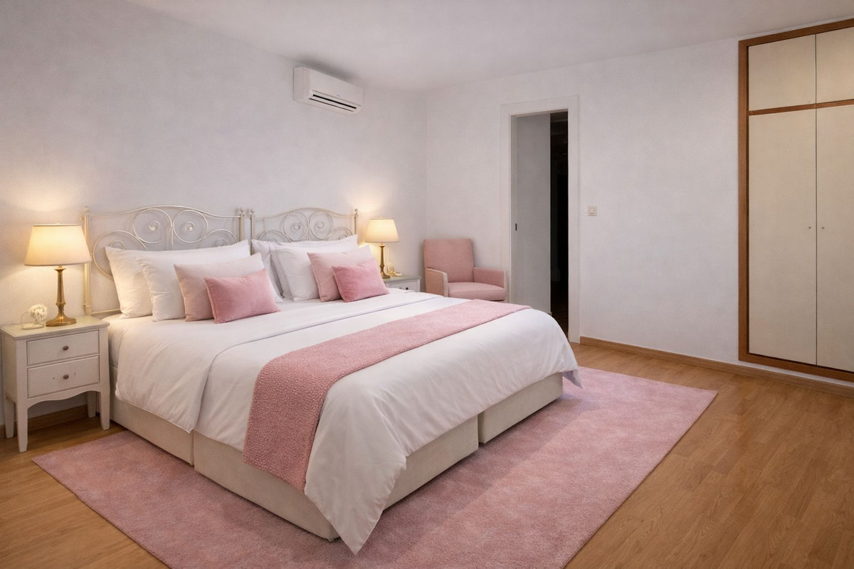 La villa comprend actuellement 7 chambres et 8 salles de bains, dont une vaste suite parentale avec dressing, grande salle de bains en marbre, terrasse privée et vue panoramique sur le mont La Concha et la mer. Des logements supplémentaires pour les invités et le personnel permettent d'accueillir facilement la famille, les visiteurs et le personnel de service.