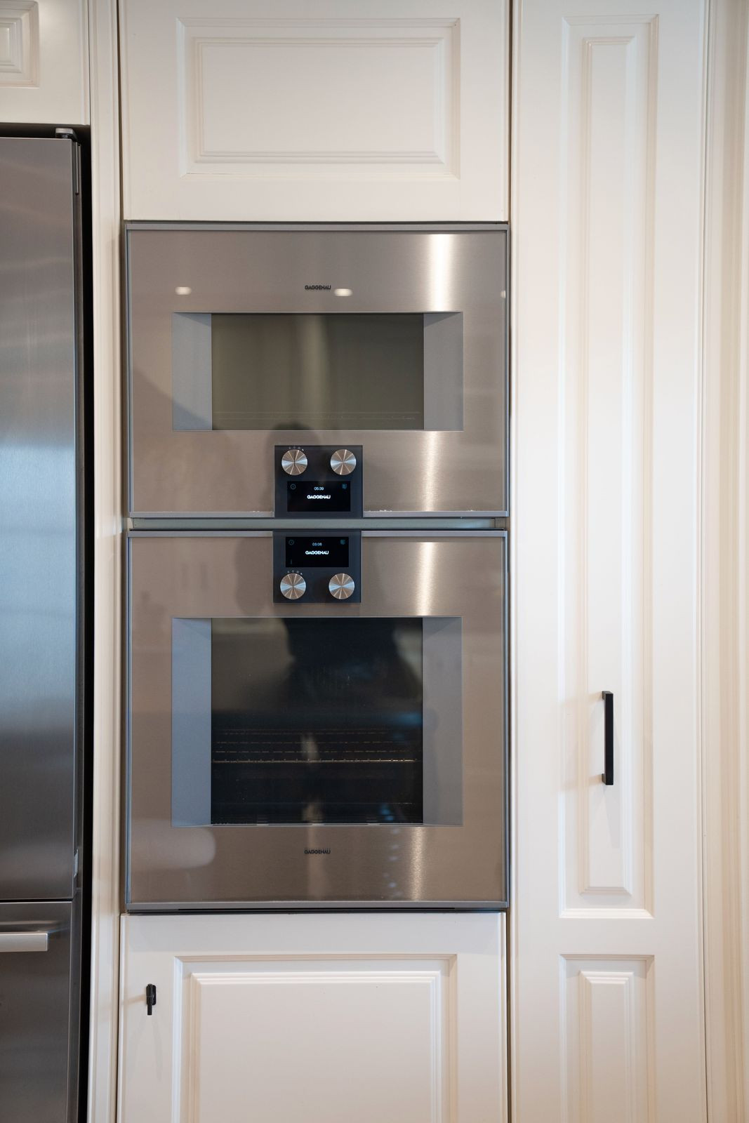 Un hall d'entrée majestueux, avec ses hauts plafonds impressionnants et ses deux caves à vin sur mesure, donne le ton dès l'arrivée. Il mène à une spectaculaire cuisine design de 50 m² entièrement aménagée, équipée de deux appareils haut de gamme Gaggenau, dont quatre fours, et d'un charmant coin repas avec cheminée – idéal pour recevoir des invités mémorables. Une cuisine d'appoint séparée avec buanderie ajoute un aspect pratique.
