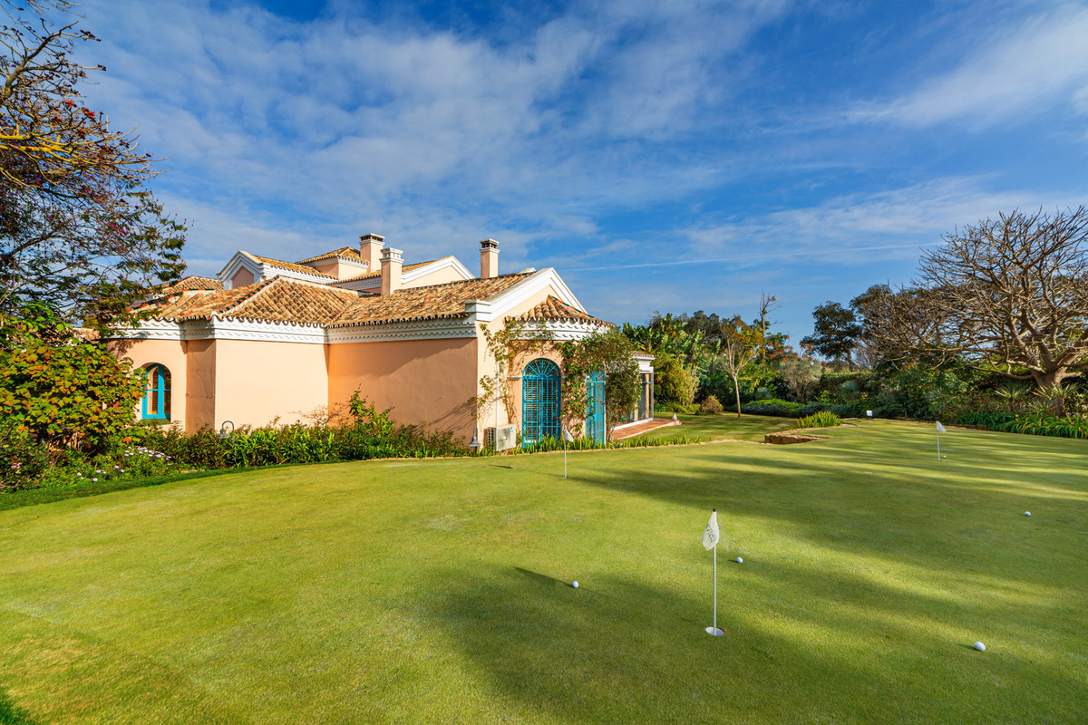 La propriété s'étend sur un terrain de 4 578 m², bénéficiant d'une situation exceptionnelle entre deux fairways du prestigieux Old Course du San Roque Club. De différents points de la maison, la vue embrasse le parcours de golf, la mer, le club-house et la Sierra Bermeja, créant un cadre d'une beauté et d'une tranquillité remarquables.