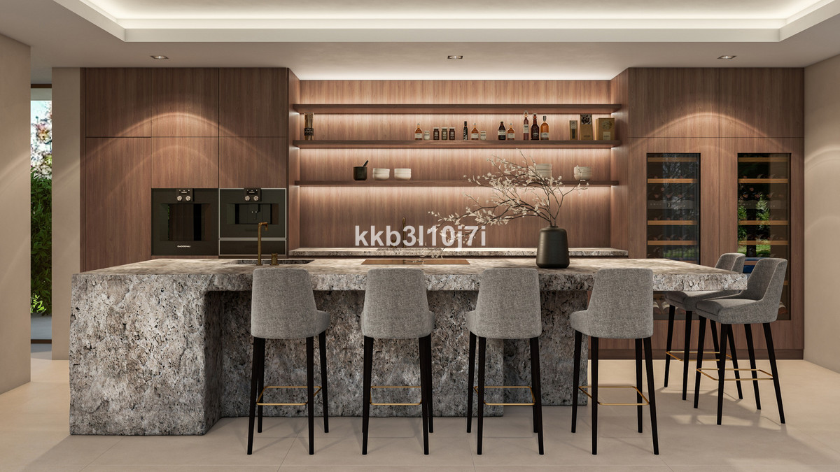 Le niveau inférieur de la villa est conçu pour offrir une expérience de vie luxueuse et complète. Outre deux chambres avec salle de bains privative pour les invités ou le personnel, ce niveau comprend une salle de cinéma privée, une cave à vin, une salle de jeux, une salle de sport entièrement équipée et une buanderie. Un espace bien-être sur mesure, comprenant sauna, hammam et bain de glace, enrichit encore davantage l'offre et crée un véritable spa privé au sein de la maison. La propriété bénéficie également d'un vaste garage pour cinq voitures, offrant un espace généreux pour les véhicules et du rangement supplémentaire, complété par un abri voiture extérieur. Pour plus de commodité et de confort, la propriété est équipée d'un ascenseur privé, assurant un accès aisé à tous les niveaux de la résidence.