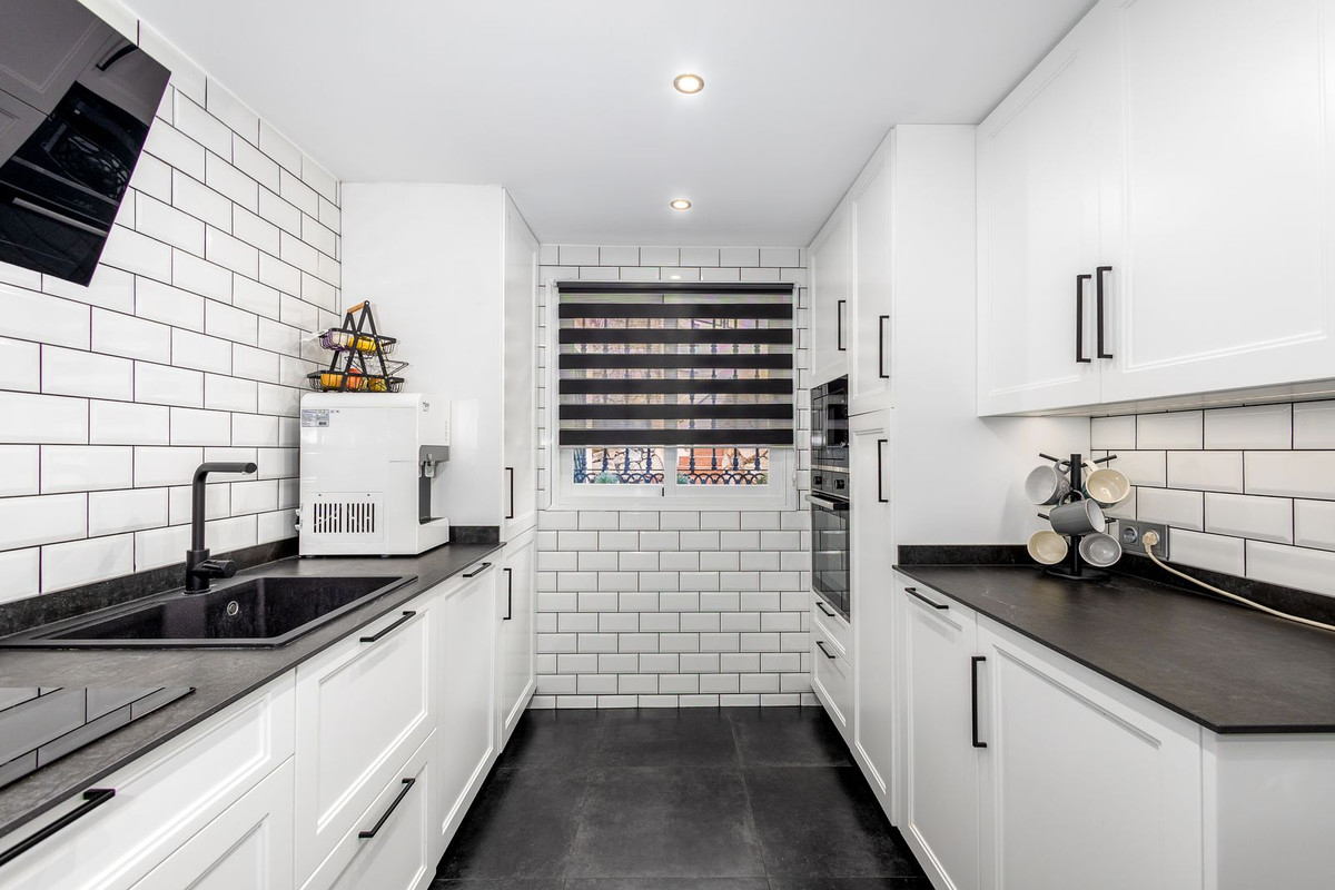 Cette propriété prête à emménager comprend un grand espace ouvert cuisine-salon-salle à manger menant à une terrasse couverte lumineuse et chaleureuse, avec vue sud-sud-ouest sur la chaîne de montagnes d'Alhaurín Golf, Barranco Blanco et au-delà.
