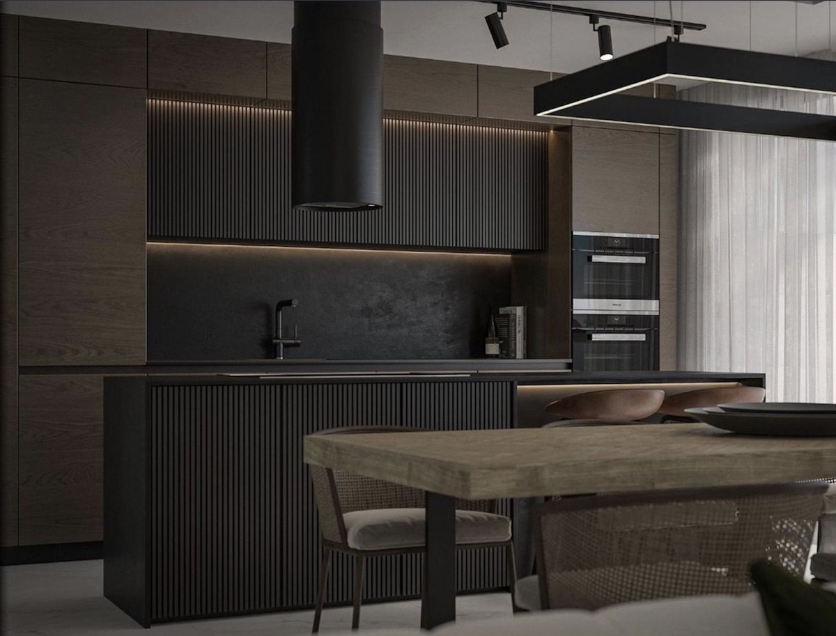 • Cuisine design avec appareils Bosch (ou équivalent) et plans de travail en porcelaine