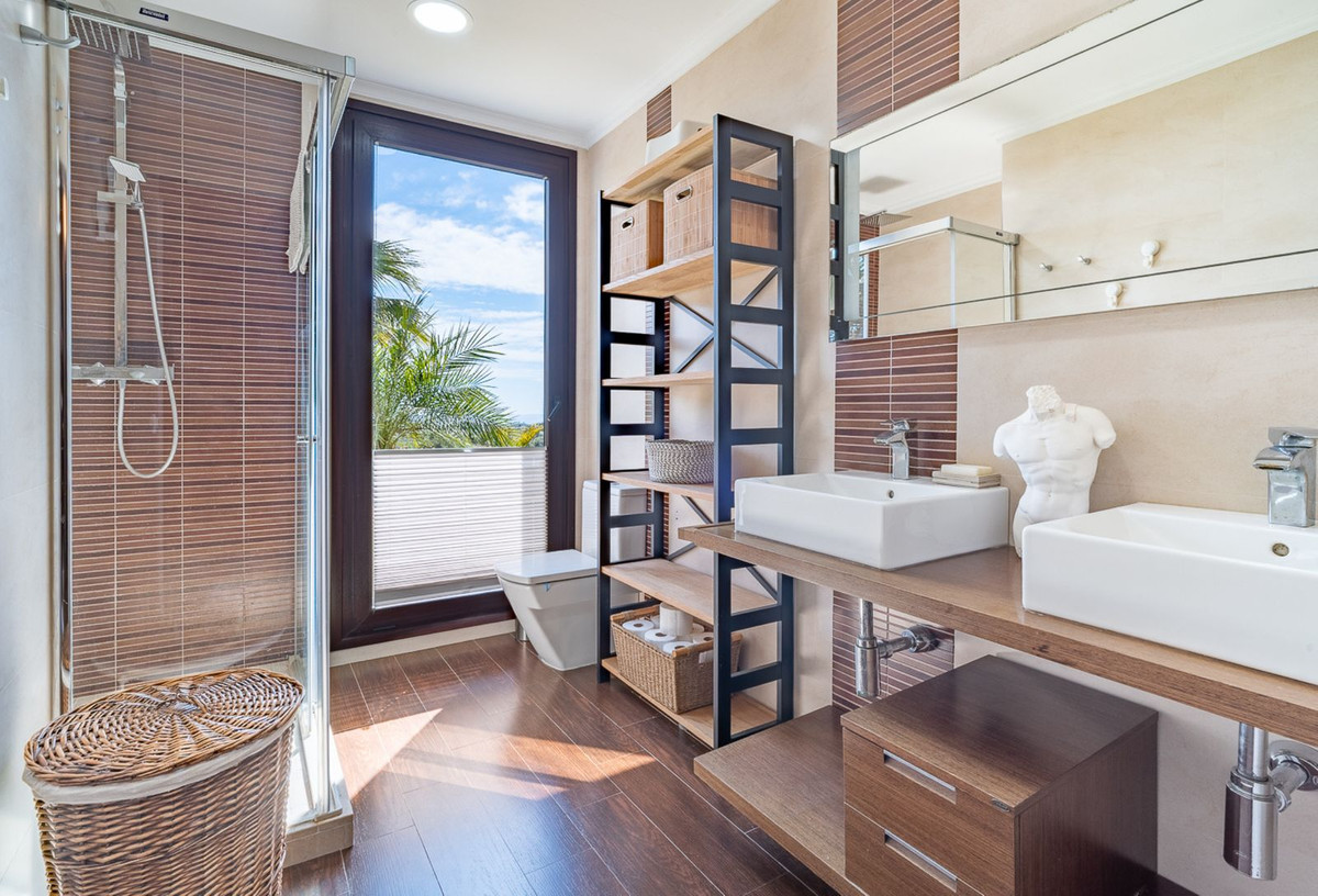 Cette propriété offre une surface habitable totale de 313 m², intelligemment agencée pour un confort et une fonctionnalité optimaux. La maison principale de 193 m² comprend trois chambres (dont une suite parentale) et de vastes pièces à vivre équipées d'une cheminée et de la climatisation. L'extérieur est conçu pour profiter pleinement du climat de la Costa del Sol tout au long de l'année, avec une piscine privée et un jardin arboré. Un atout majeur est la maison d'amis de 35 m², idéale pour accueillir des visiteurs en toute indépendance ou comme investissement locatif, ainsi qu'un garage fermé de 45 m² pouvant accueillir plusieurs véhicules.
