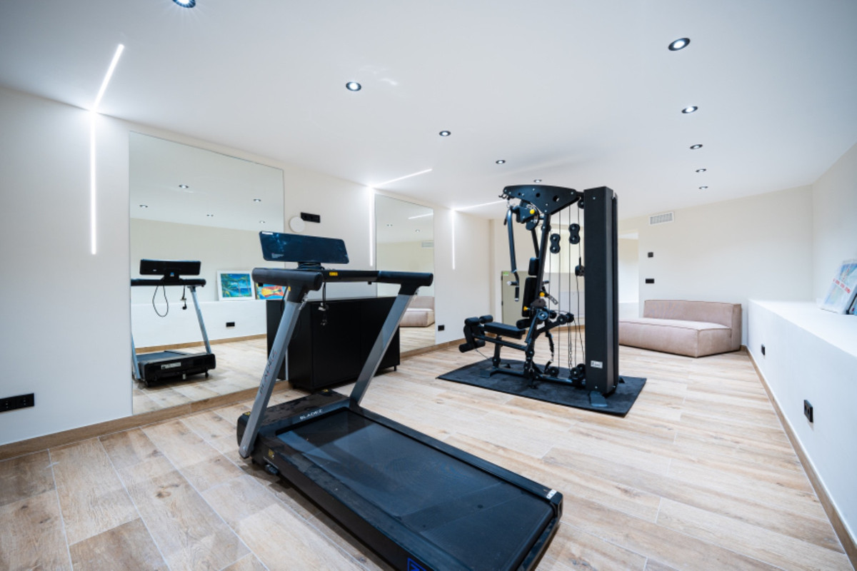 Upstairs, the master suite spans the entire floor, with a walk-in wardrobe, dual bathrooms and a private terrace overlooking the Mediterranean. The lower level features a guest suite with its own kitchen, a gym and a climate-controlled wine cellar. With solar panels, underfloor heating and parking for several cars, Villa Royale is a rare blend of elegance, privacy and effortless luxury in one of Marbella’s most desirable locations.