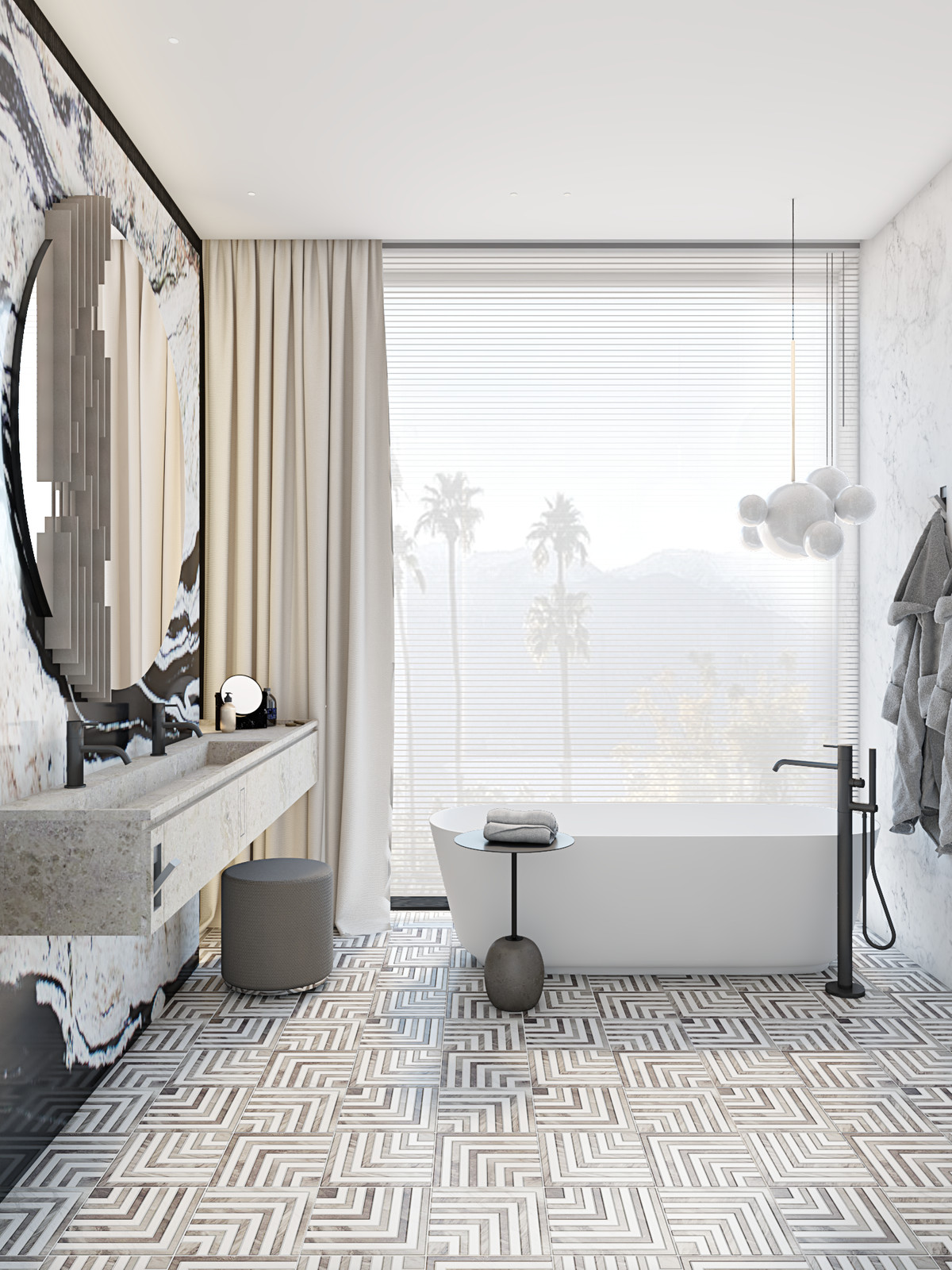 La villa est dotée de portes coulissantes Sky-Frame allant du sol au plafond, assurant une transition harmonieuse entre l'intérieur et l'extérieur, une luminosité naturelle maximale et des vues imprenables.