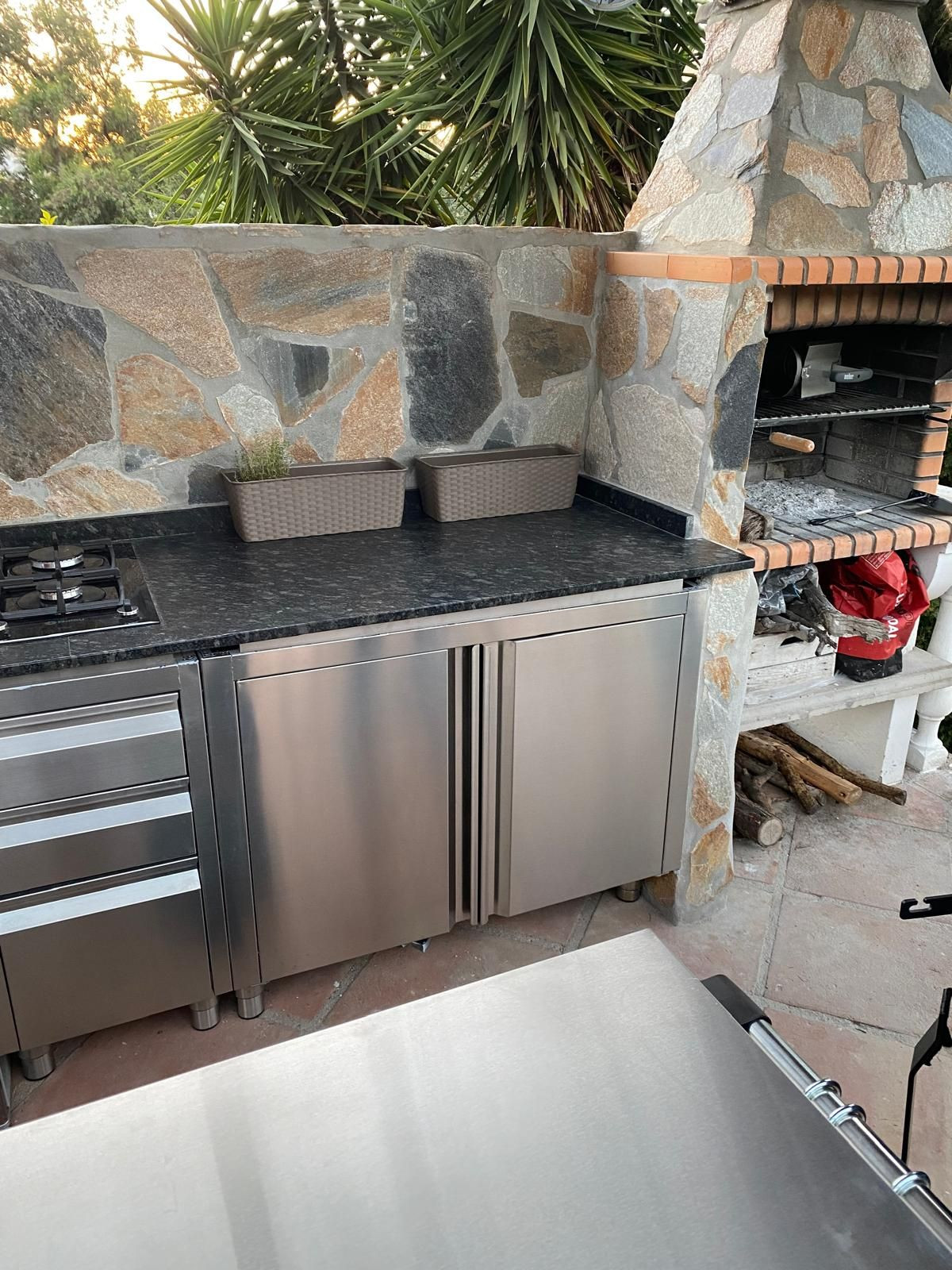 Depuis les vastes terrasses qui entourent la propriété, un magnifique et large escalier en pierre descend vers l'espace piscine (avec pergola hawaïenne et parasol, cuisine d'été avec barbecue en pierre, grand jacuzzi 5 places, douche et WC) et l'appartement privé, un véritable petit bijou pour des séjours entre amis ou en famille, ou à louer. Ce charmant studio de 30 m², décoré dans un style balinais/polynésien, comprend une salle de bain avec une grande douche, une cuisine ouverte, un séjour avec un canapé-lit deux places et un coin nuit avec un lit deux places. La terrasse autour de la piscine (5 x 10 mètres) est idéale pour profiter des chaudes journées d'été et des douces soirées à la belle étoile. Un espace planté de citronniers, parfait pour créer un potager, entoure également la piscine.