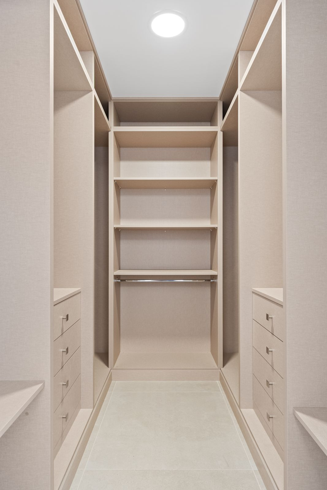 Les salles de bains sont équipées d'appareils sanitaires Galassia et de robinetterie Nobili, alliant fonctionnalité et design raffiné. Le même soin a été apporté aux détails intérieurs : portes laquées blanches et placards aménagés avec systèmes de tiroirs intégrés, pour un style à la fois pratique et élégant.