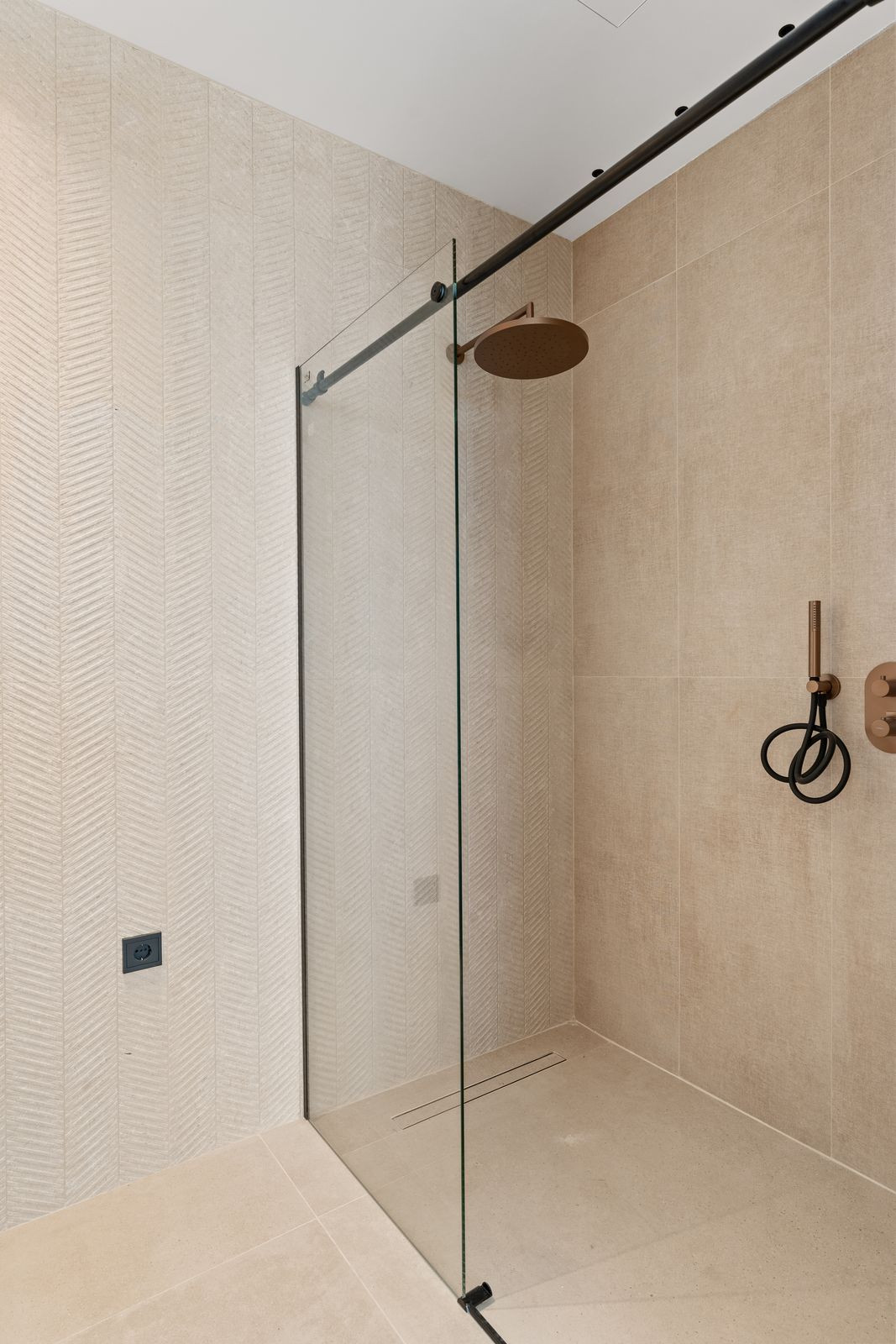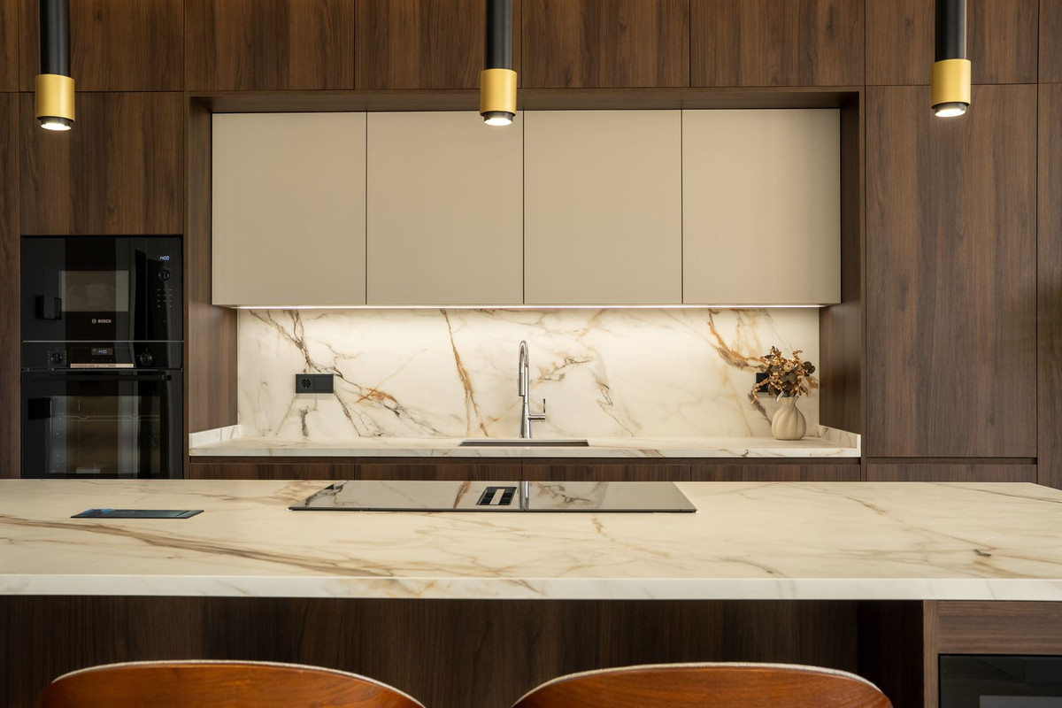 Chaque élément de la construction a été choisi avec un souci constant de qualité, de durabilité et d'esthétique. La cuisine est équipée de meubles Porcelanosa, assortie à un carrelage en porcelaine au sol et aux murs de la même marque prestigieuse, créant ainsi une finition harmonieuse et élégante dans toute la propriété. Les fenêtres en aluminium Strugal intègrent la technologie de rupture de pont thermique, un double vitrage de sécurité, un contrôle solaire et un vitrage à faible émissivité, garantissant une excellente isolation, une efficacité énergétique optimale et une sécurité renforcée.