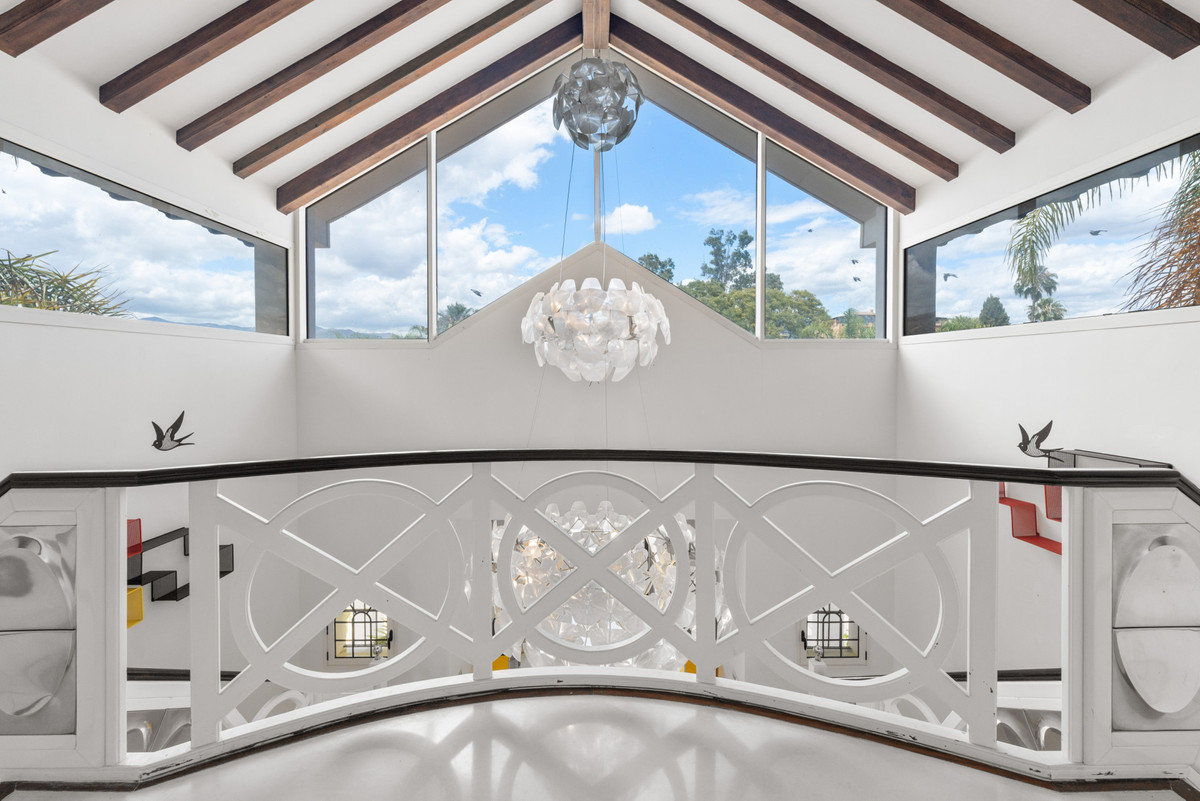 La villa s'ouvre sur un hall d'entrée spectaculaire à double hauteur, orné de poutres apparentes et d'un lustre imposant. Deux élégants salons donnent sur une vaste terrasse couverte face à la mer. La propriété comprend une salle à manger formelle et une cuisine moderne et lumineuse avec un îlot central. Le rez-de-chaussée abrite également deux chambres avec salle de bains privative en marbre.