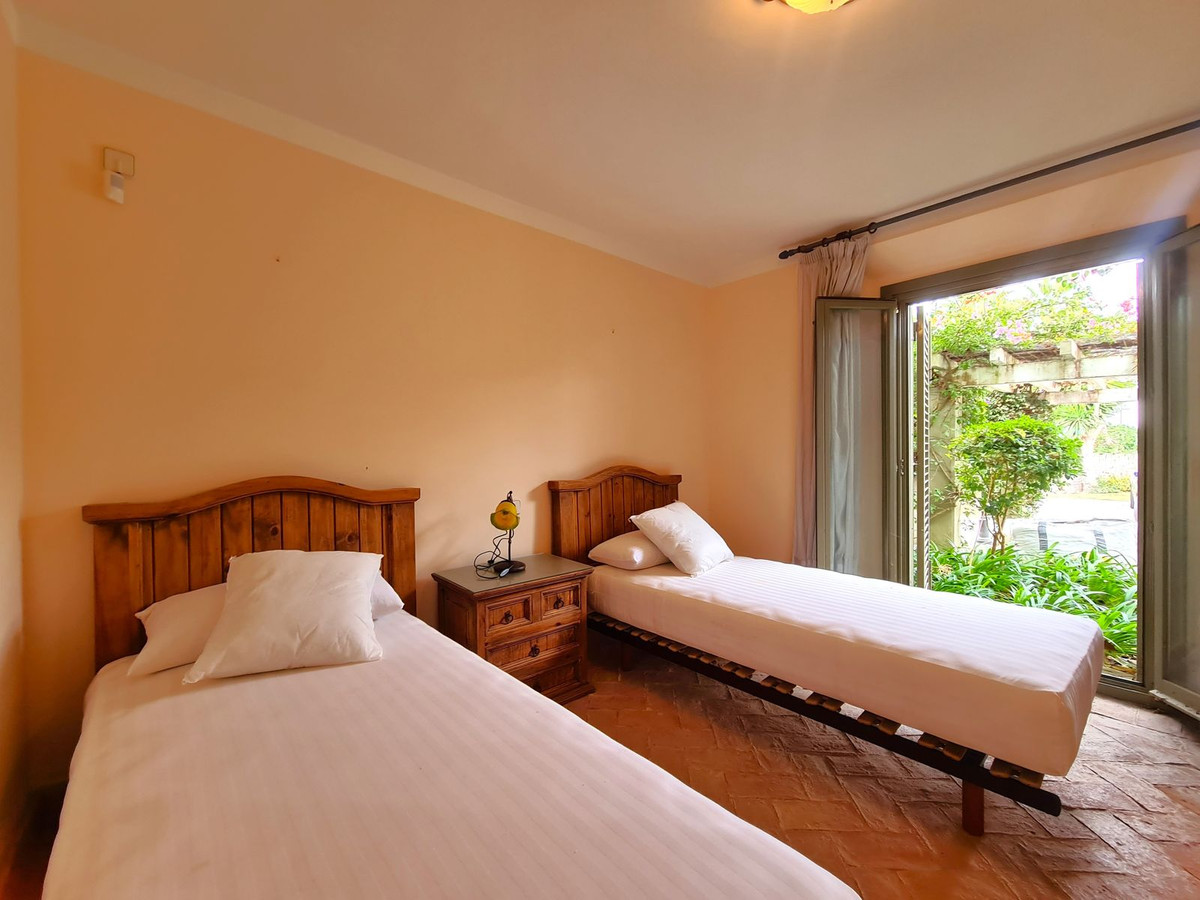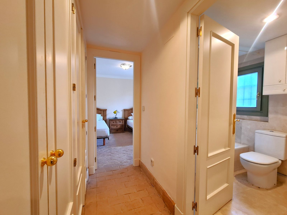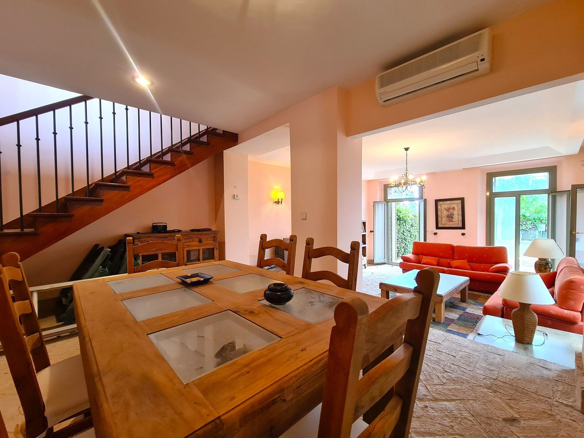 Située dans l'un des quartiers résidentiels les plus huppés de Sotogrande, cette propriété se trouve à seulement 2 minutes à pied de la plage, bénéficie d'un accès direct aux emplacements du port de plaisance et est proche des restaurants, bars de plage et commerces. Son emplacement privilégié séduira les amateurs de sports nautiques, de tennis, de padel et de golf. À seulement 20 km de l'aéroport de Gibraltar et à 95 km de l'aéroport de Malaga, elle est idéale comme résidence principale ou secondaire. La propriété, orientée sud-ouest, est répartie sur deux niveaux. Au rez-de-chaussée, un hall d'entrée spacieux dessert un vaste séjour-salle à manger avec cheminée et accès au grand jardin privatif. On y trouve également une cuisine spacieuse et entièrement équipée, donnant sur une véranda qui communique avec le jardin. Au rez-de-chaussée se trouve l'une des trois chambres de la propriété. Cette chambre spacieuse dispose d'un grand placard intégré et d'une salle de bains privative. À l'étage, deux autres grandes chambres avec de nombreux placards intégrés et de spacieuses salles de bains privatives. L'une de ces chambres bénéficie d'un accès direct au solarium. Cette propriété comprend un grand parking privé à l'entrée pouvant accueillir deux voitures, ainsi qu'un accès à de magnifiques jardins communs et à une piscine. Une occasion unique de profiter du luxe de la vie en bord de mer ! Nous vous recommandons vivement de visiter ce bien.