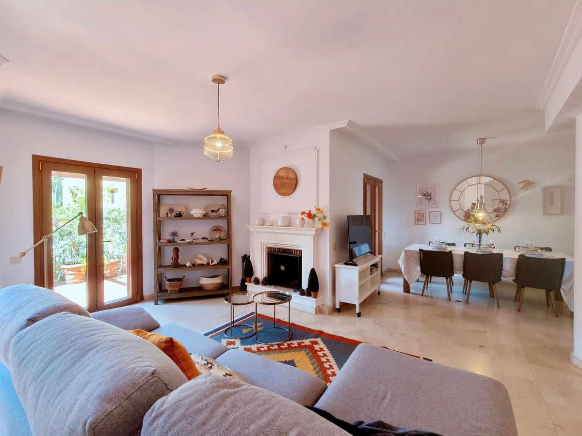 Répartie sur trois niveaux, cette magnifique maison offre de généreux espaces baignés de lumière naturelle. Le rez-de-chaussée vous accueille avec un vaste séjour/salle à manger ouvert, agrémenté d'une cheminée chaleureuse et donnant directement sur une grande terrasse privative. Idéale pour profiter du soleil de l'après-midi et de douces soirées. La copropriété a autorisé la fermeture partielle de la terrasse par des baies vitrées et un toit, permettant ainsi la création d'une chambre supplémentaire ou d'un espace de vie polyvalent, et apportant confort et valeur ajoutée à la propriété.