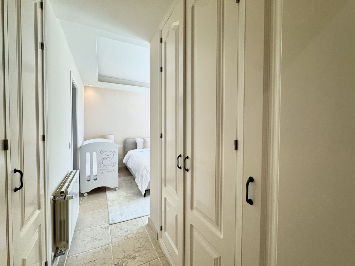 Ce superbe appartement d'angle, situé au deuxième étage de la résidence Royal Flamingos, bénéficie d'un emplacement stratégique au sein du prestigieux complexe résidentiel sécurisé 24h/24. Niché dans le quartier huppé de Los Flamingos, il offre à ses résidents une vue imprenable plein sud et surplombe le magnifique golf de Los Flamingos. Récemment rénové (peinture complète, cuisine moderne et nouveau réservoir d'eau), cet appartement se distingue parmi les rares biens disponibles au sein du complexe. L'entrée s'ouvre sur un vaste séjour/salle à manger doté de grandes baies vitrées coulissantes donnant sur une spacieuse terrasse couverte. La cuisine entièrement équipée comprend une buanderie. À droite du hall d'entrée, un couloir dessert une troisième chambre avec salle de bains privative et accès à une terrasse couverte. La chambre principale, située au bout du couloir, dispose d'une grande salle de bains privative et d'un accès à une terrasse ouverte privative offrant une vue sur la mer et le jardin. Los Flamingos se distingue comme l'un des complexes résidentiels de golf les plus prestigieux et exclusifs de la Costa del Sol, niché dans le cadre serein du New Golden Mile, à Benahavis. Doté d'équipements haut de gamme, ce complexe de golf incarne le luxe et abrite le prestigieux hôtel Villa Padierna Palace, unique hôtel spa six étoiles d'Espagne. Il a notamment reçu la prestigieuse distinction de « Meilleur complexe de golf de luxe au monde » en décembre 2012, décernée par les World Travel Awards. Les clients du Los Flamingos Golf Resort bénéficient d'un accès privilégié à un club de plage privé, situé à quelques minutes en voiture. Conçu par le célèbre Antonio Garcia Garrido, le Flamingos Golf Club comprend trois parcours de 18 trous et une académie de golf exceptionnelle, qui figure parmi les meilleures d'Europe. L'ensemble de la vallée a été aménagé avec soin sous la direction d'un maître d'œuvre...