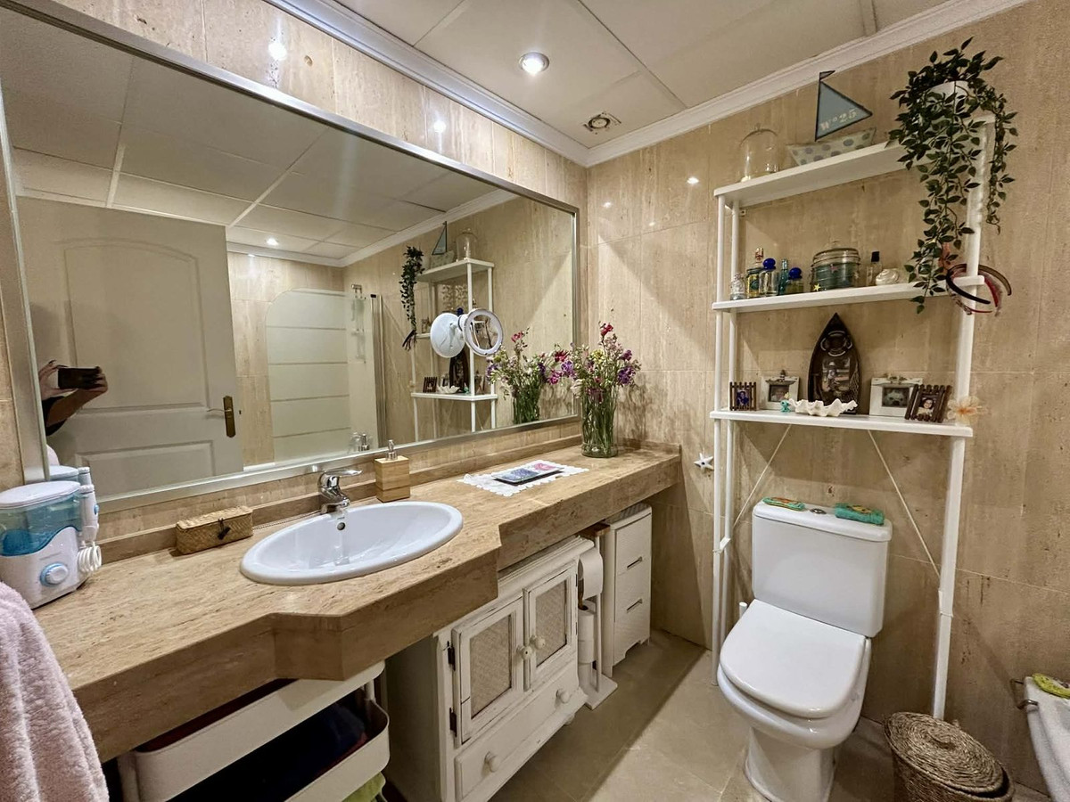 Appartement de jardin exposé plein sud, situé dans la résidence sécurisée 24h/24 Santa Maria Village à Elviria, à quelques minutes seulement des plus belles plages de sable de Marbella. Spacieux et impeccable, cet appartement allie confort et praticité. Il comprend un vaste séjour/salle à manger ouvert avec une grande cuisine entièrement équipée. Le séjour et la chambre principale donnent sur une terrasse couverte offrant une vue sur le jardin privatif et les environs. Cette résidence calme et bien entretenue dispose de jardins paysagers, de 4 grandes piscines, de pataugeoires et se trouve à seulement 5 minutes en voiture de 2 centres commerciaux avec boutiques, supermarchés, bars, restaurants et autres commodités, offrant ainsi un parfait équilibre entre confort et accessibilité. L'appartement comprend également la climatisation réversible, une buanderie, une place de parking privée et un cellier. Idéal comme résidence secondaire ou principale.