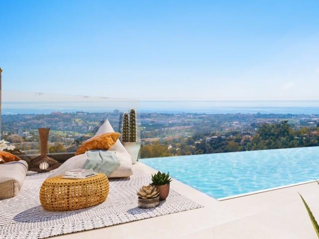 Nouveau développement de villa jumelée située à Benahavis, dans son propre complexe sécurisé et fermé et entouré de jardins paysagers, c'est un concept entièrement unique mettant l'accent sur un design de pointe et adhérant à l'attrait de luxe absolu exigé par le client exigeant. La villa offre le summum de la domotique, qui offre aux propriétaires une sécurité, un confort, une commodité et une efficacité énergétique en leur permettant de contrôler les appareils intelligents par une application sur leur smartphone ou un autre appareil en réseau. Le rez-de-chaussée se compose d'une conception ouverte avec de grandes fenêtres du sol au plafond, ce qui permet au flux naturel de lumière d'entrer dans la propriété depuis sa vue orientée sud-est. Les villas ont été conçues en tenant compte du climat, avec un grand espace de vie extérieur au rez-de-chaussée, de grands balcons attachés à chacune des 3 chambres au premier étage et une terrasse sur le toit qui profite pleinement des superbes vues panoramiques. Le sous-sol offre une immense pièce polyvalente, idéale pour une salle de jeux, une salle de fitness, une cave à vin ou encore pour créer d'autres chambres. Un ascenseur en verre de style moderne se démarque. L'intérieur est une leçon de perfection qui fait des villas l'une des meilleures propriétés de la région de Marbella.
