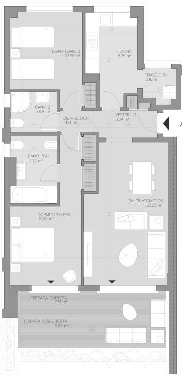 Appartement, non meublé, cuisine équipée, Underground parking, piscine communautaire, Jardin: Privé et commun, Orientation: Sud-ouest