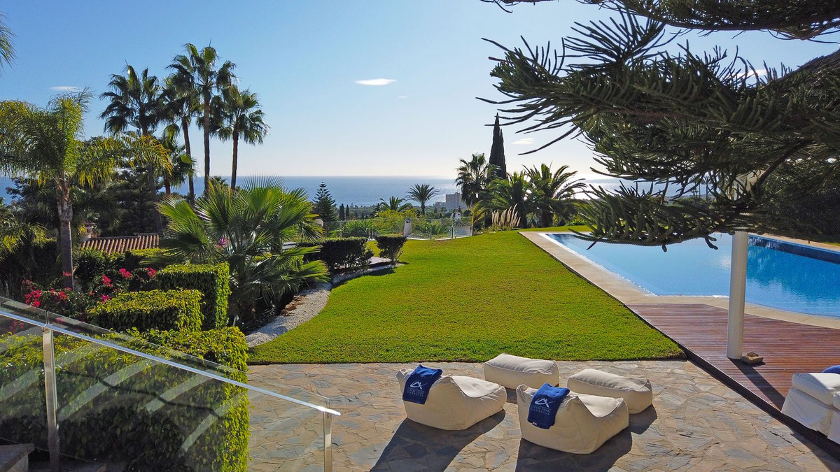 One of east Marbella finest villa, this 7 bedroom 9 bathroom luxury villa has everything you could want, large bright airy rooms all with great views of the gardens then out to sea, beautiful established tropical gardens with a fantastic pool and poolside area.