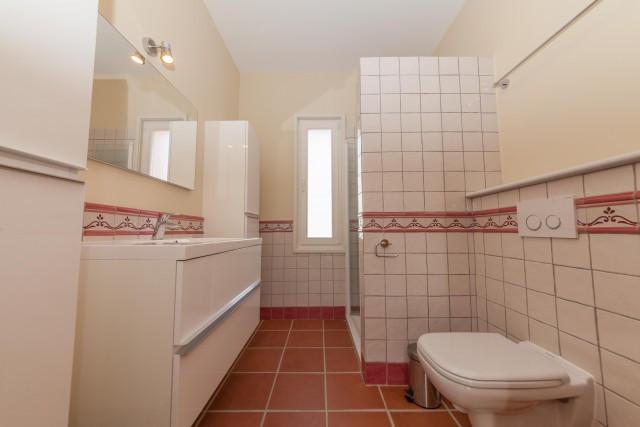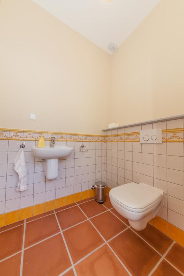 The independent guest apartment has its own entrance and also connects to the garage. Inside, there is a hallway leading to an open-plan living and dining room with fitted kitchen and access to the garden and pool. The apartment has two double bedrooms, both with fitted wardrobes and doors to the garden, sharing a bathroom and separate WC. There is also a large gym or family room and two storage rooms.