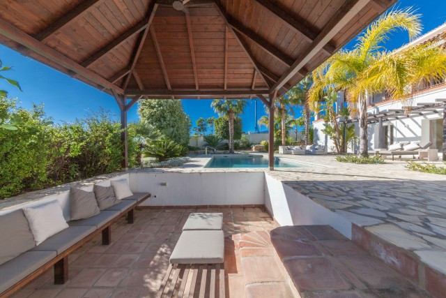 Access to the property is via automatic gates and a long driveway with a double carport and turning space. The driveway also leads to the main garage. Near the villa entrance is a large ornamental fish pond, and the traditional Andalusian-style courtyard features an olive tree. The gardens are landscaped for low maintenance, with no grass and various areas to sit and enjoy the surroundings throughout the year. To the rear is the swimming pool with sun terrace and a pergola with sunken seating.